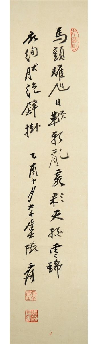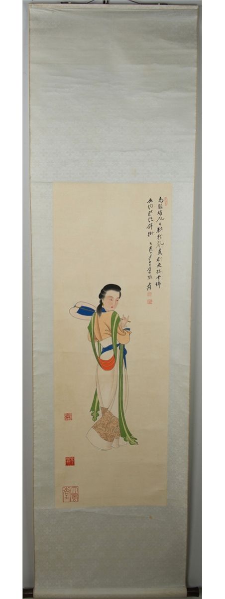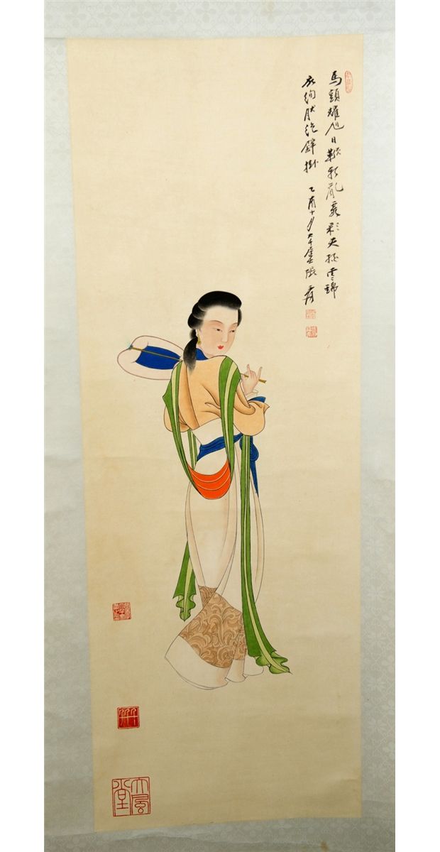 Portrait of a lady, hanging scroll, Chinese ink and watercolour on paper, signed Zhang Da Qian (1899-1983) with multiple red seals. 107 cm x 40 cm.
