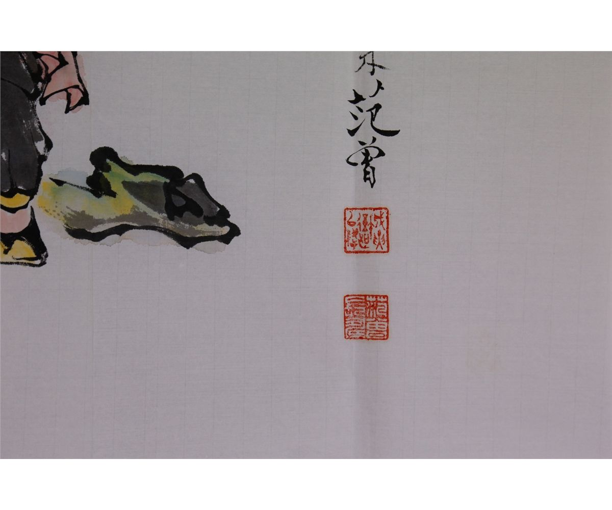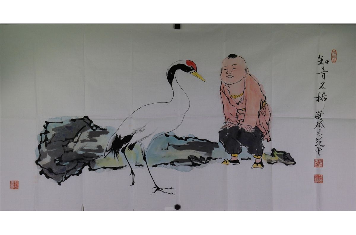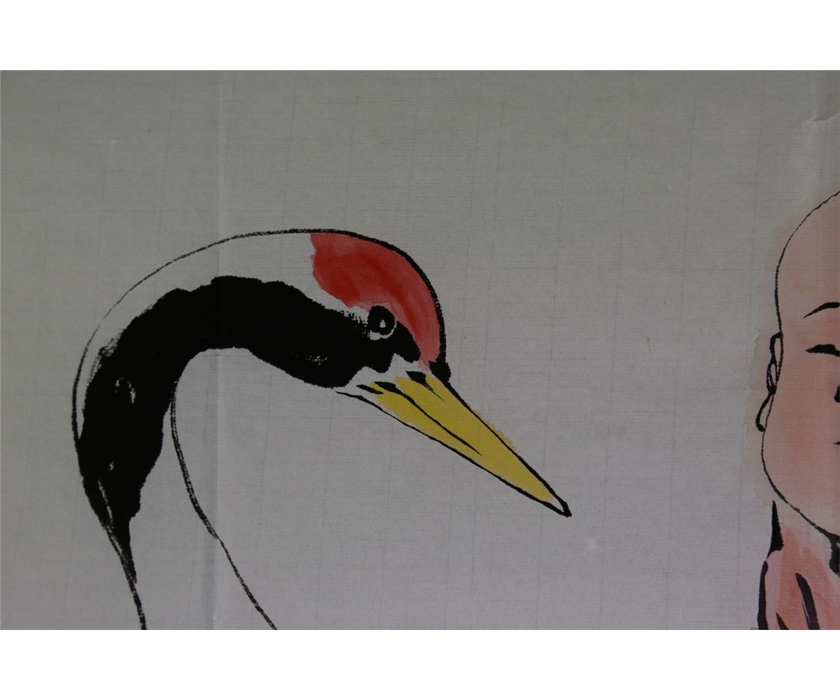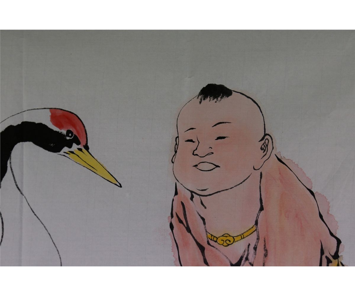 A child with a crane; Chinese ink and watercolour on paper; signed Fan Zeng and inscribed with four artist seals; 68 cm x 138 cm
