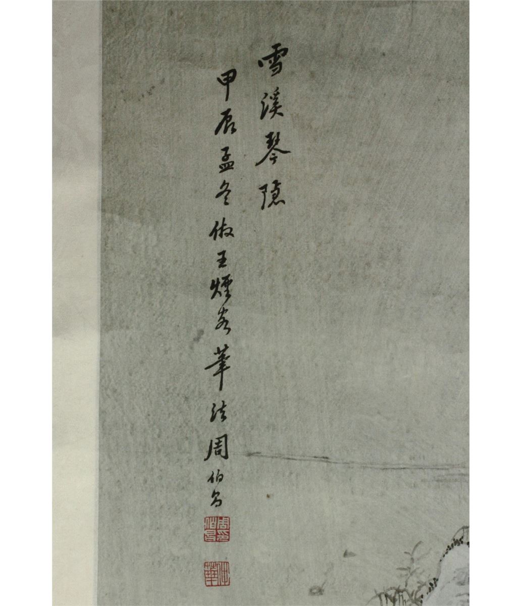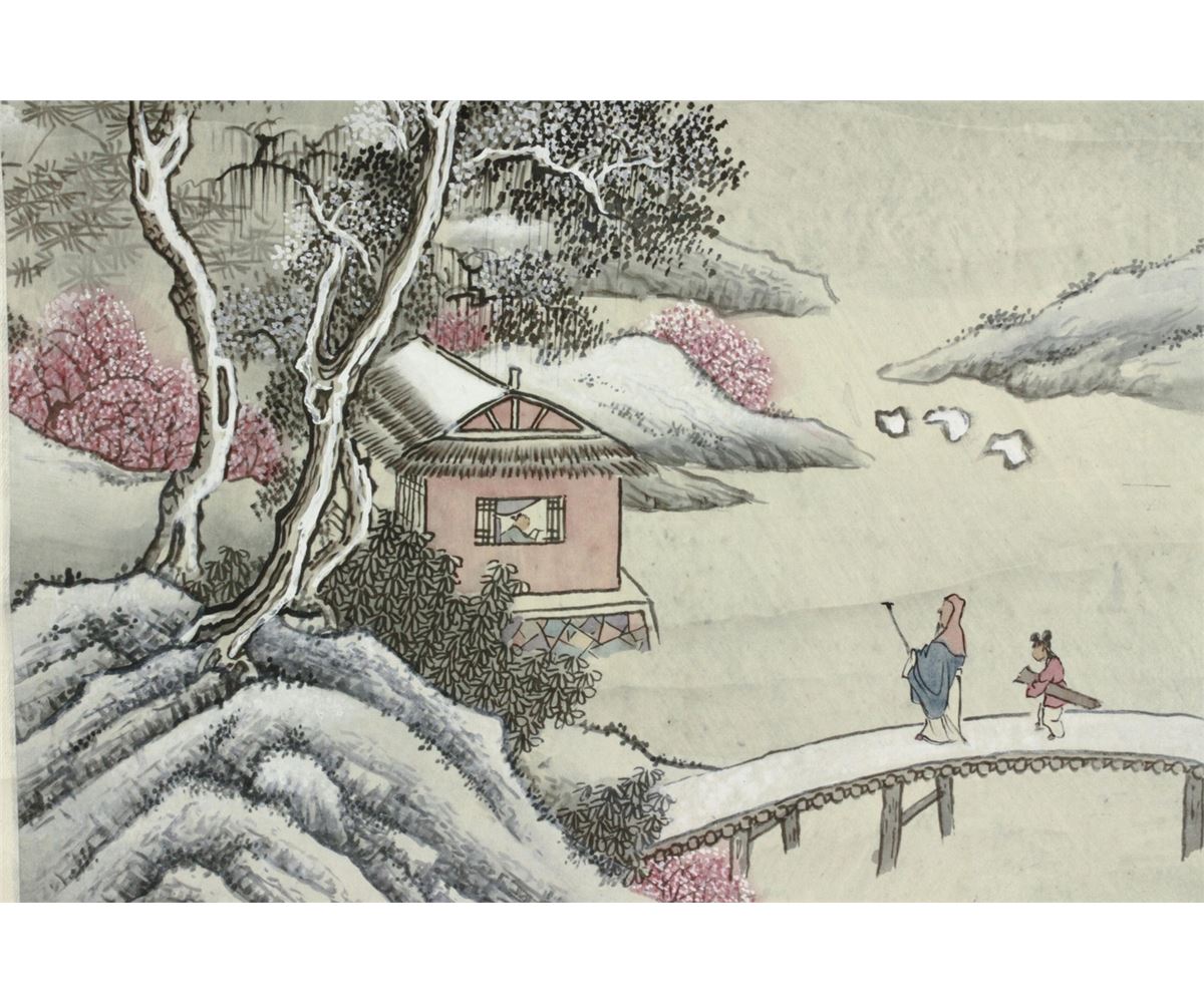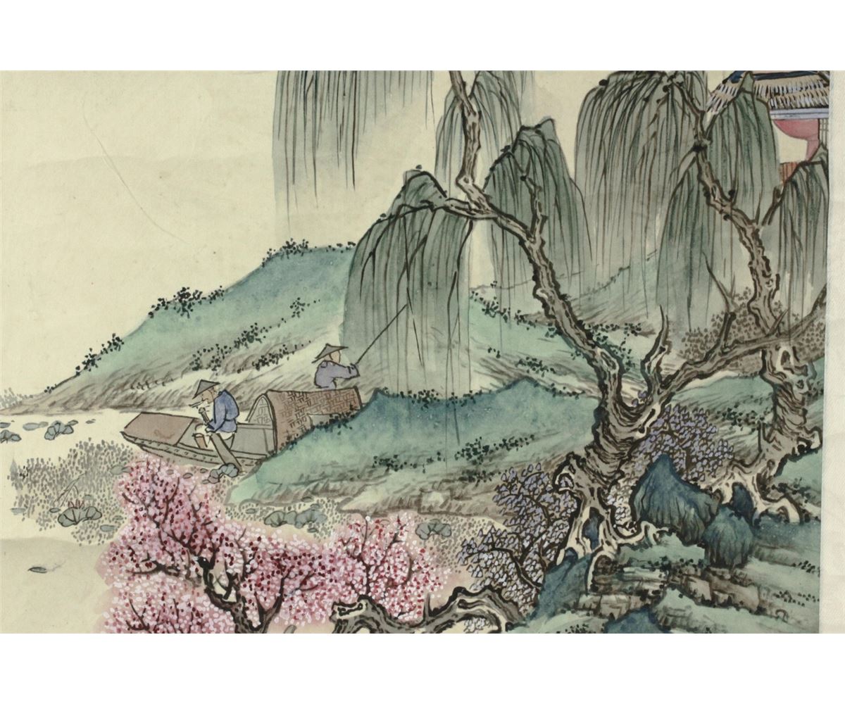 Pair of Landscape paintings; Chinese ink and watercolour on paper; hangning scroll; signed Zhou Bochang and inscribed with two seals on each; 102 cm x 38 cm each. Property of a Toronto collector brought to Canada in 1950's