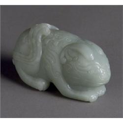 Chinese Pale Celadon Jade Figure of a, Recumbent Ram, 20th Century, Length: 4-1/2 in (11.4...