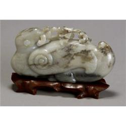 Chinese Pale Gray Celadon Jade Figure of a Recumbent Mandarin Duck