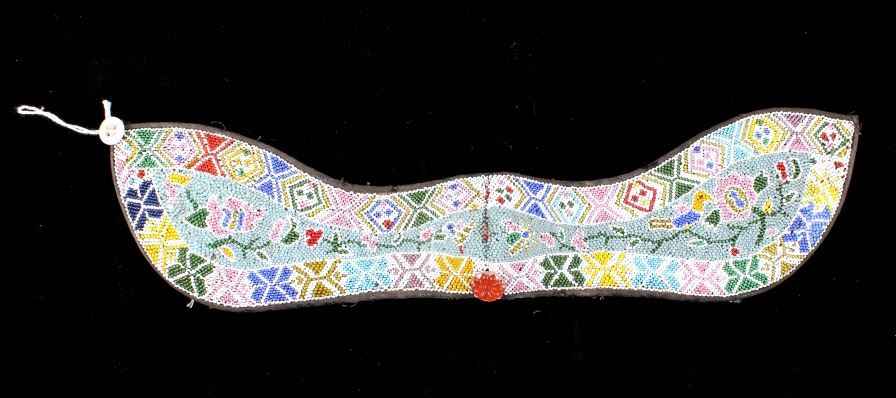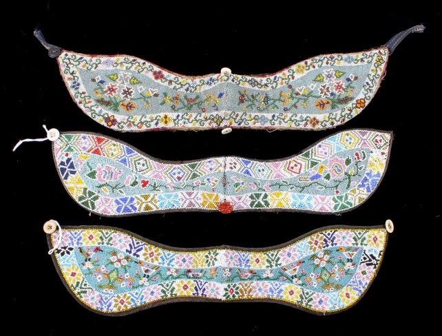 Offered to you in this lot is a set of three beaded collars, originating from the Straits-Born Chinese, otherwise known as Peranakan Chinese. The Peranakan are the descendants of Chinese immigrants, who came to what is now Malaysia and Singapore, between the 15th & 17th centuries. The traditional Peranakan garb typically depicts European style floral subjects - these collars are no exception. Each collar is constructed on early trade cloth, and fully beaded with; robin egg blue, and chalk white trade seed beads as the predominant colors, the collars additionally show a wide array of polychrome trade seed beads, arranged in traditional floral, and geometric motifs. The collars show good condition for age, and are believed to originate from the late 1800's, to the early 1900's. The collars are roughly the same size, however, the largest measures 15" long, and 3 1/4" wide.