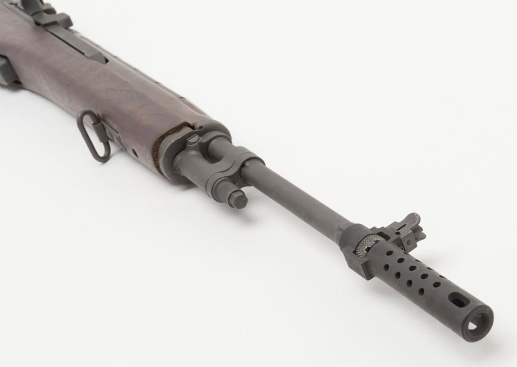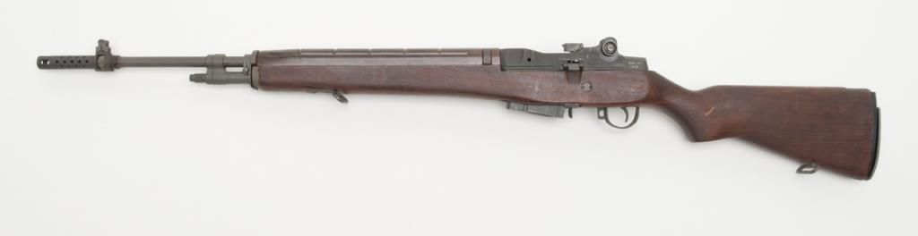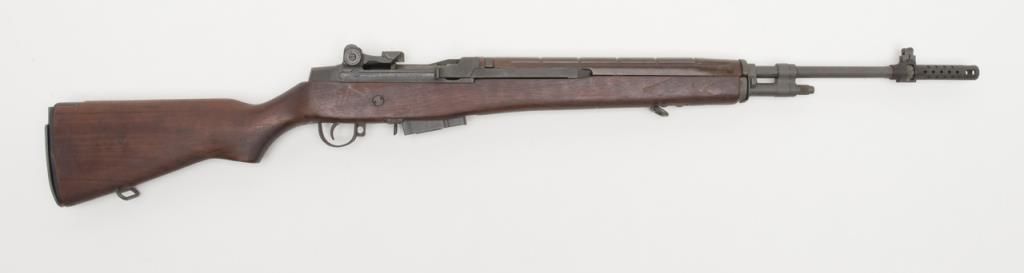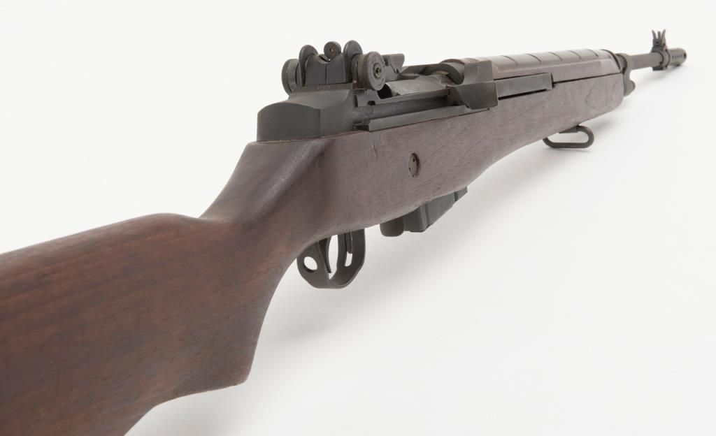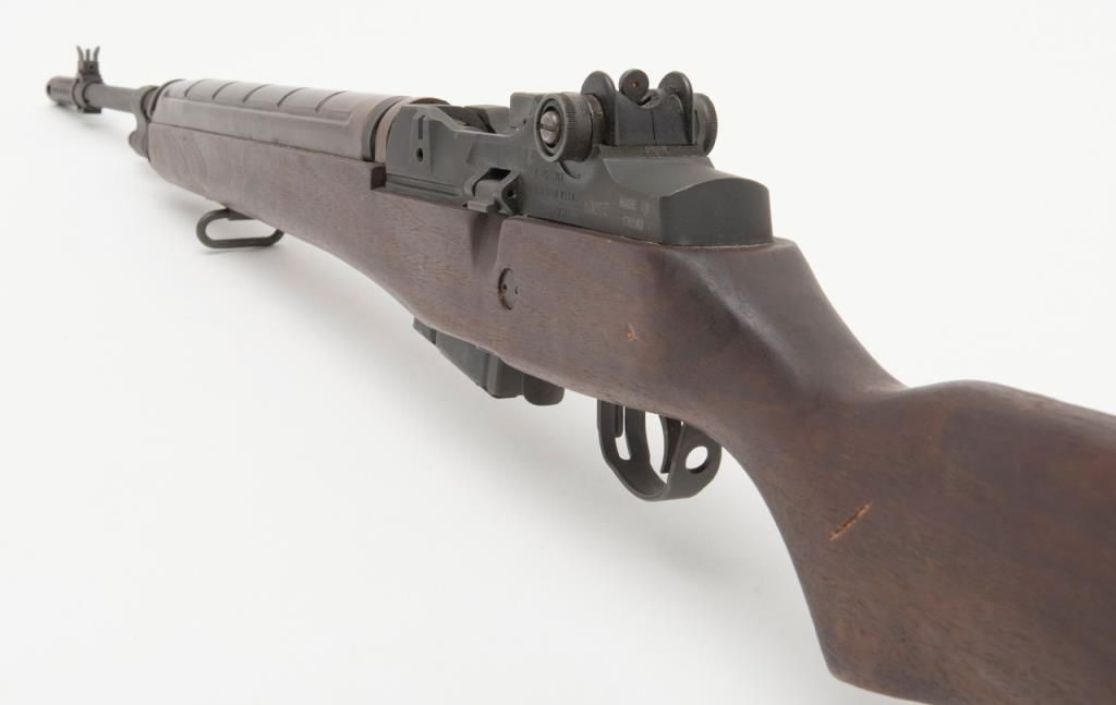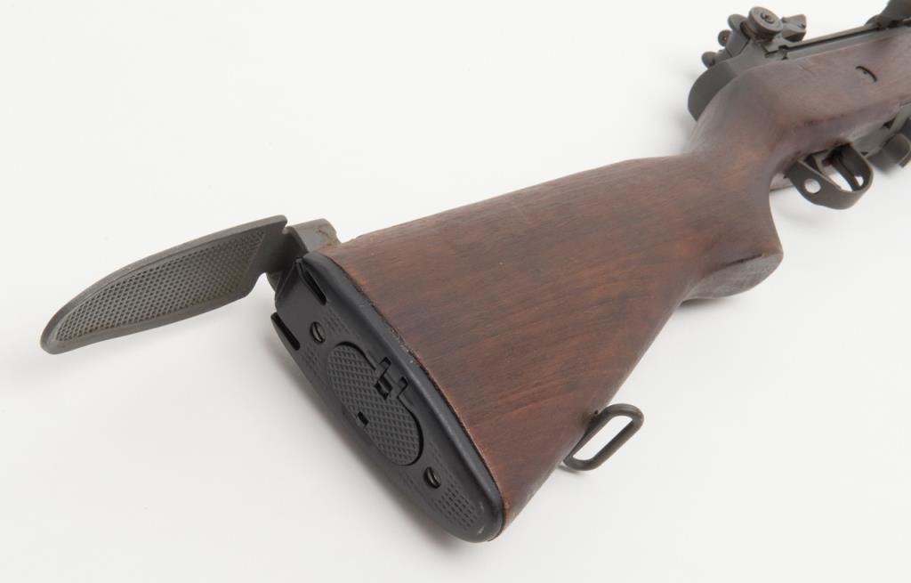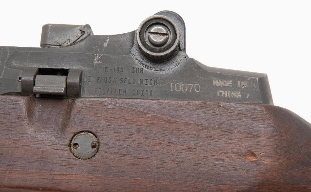 Chinese Polytech M-1A semi-automatic rifle, caliber .308, Serial #10070. The rifle is in overall very good condition with 24” barrel with an integral muzzle break. The rifle retains nearly all of its military finish with slingswivels, detachable mag and metal butt plate with trap. The bore is very good, the action crisp and markings sharp on this rifle. The smooth wood stocks are in overall very good condition with small mars consistent with storage. (Modern/PPT). Est.: $700-$1,400.
