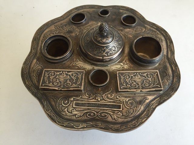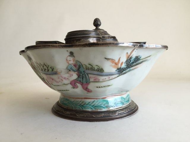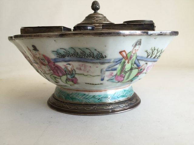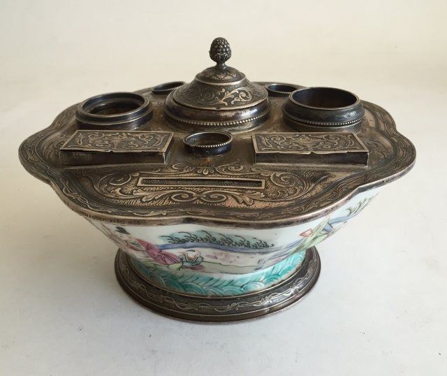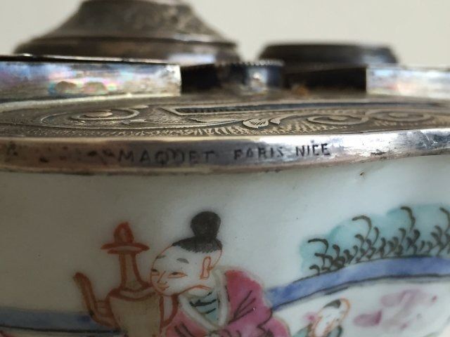 With French silver mounts. Signed on silver "Maquet Paris Nice." Approx. 3 1/2" H x 6 3/4" W.