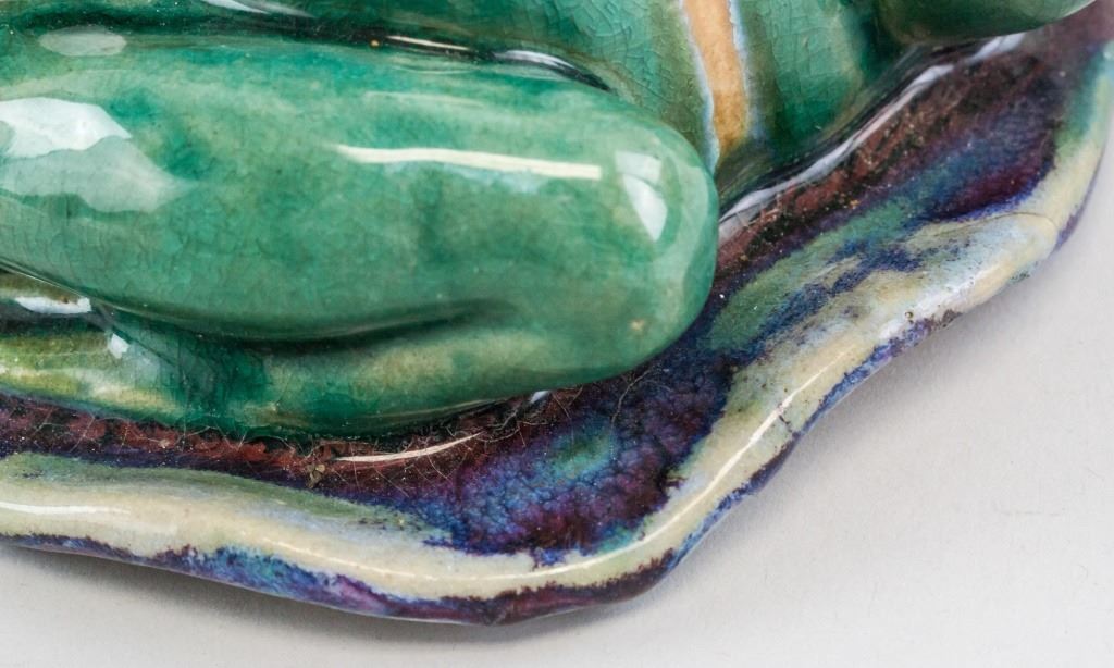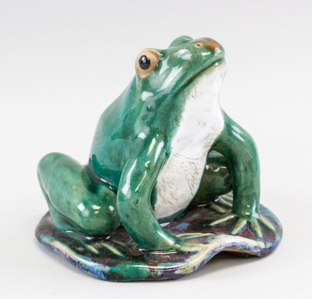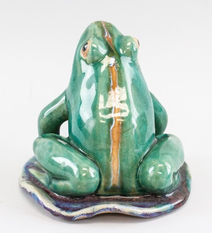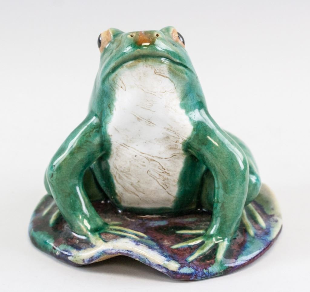 Chinese porcelain statue. Of frog on lily pad. H: 18 cm, W: 17 cm, 1083 grams.