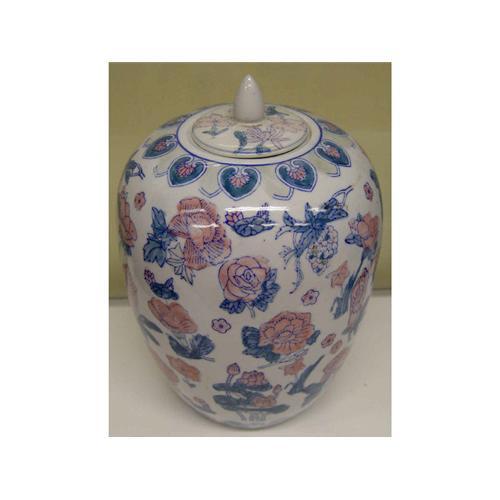 Chinese Porcelain Ginger Jar Vase Flower Adorned SIZE: 13 inches height. CONDITION: Very good.