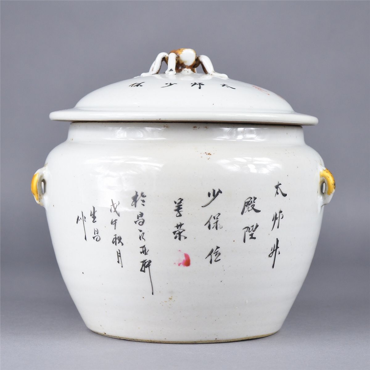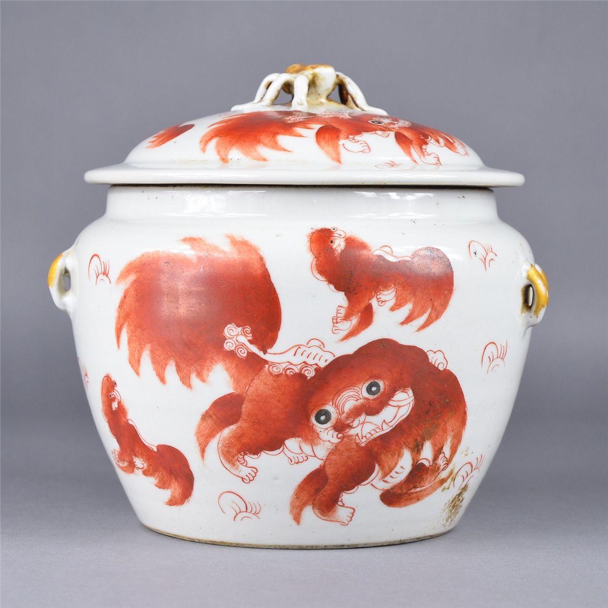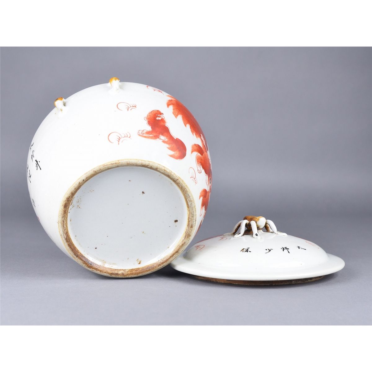 Chinese porcelain jar; featuring squirrel design; D: 18 cm, H: 18 cm