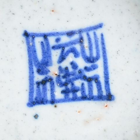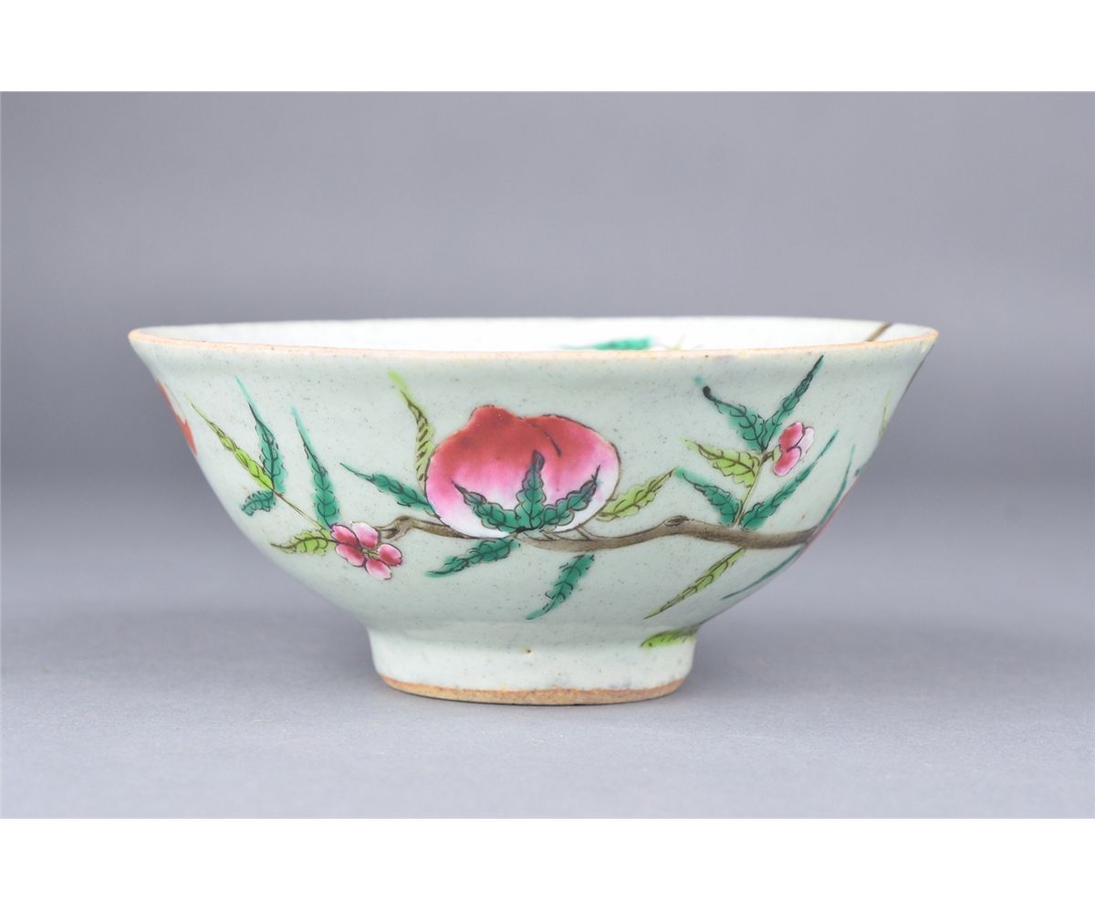 Chinese Famille Rose enameled porcelain peach bowl; stylized 19th Century Mark on base; D: 14 cm, H: 6 cm