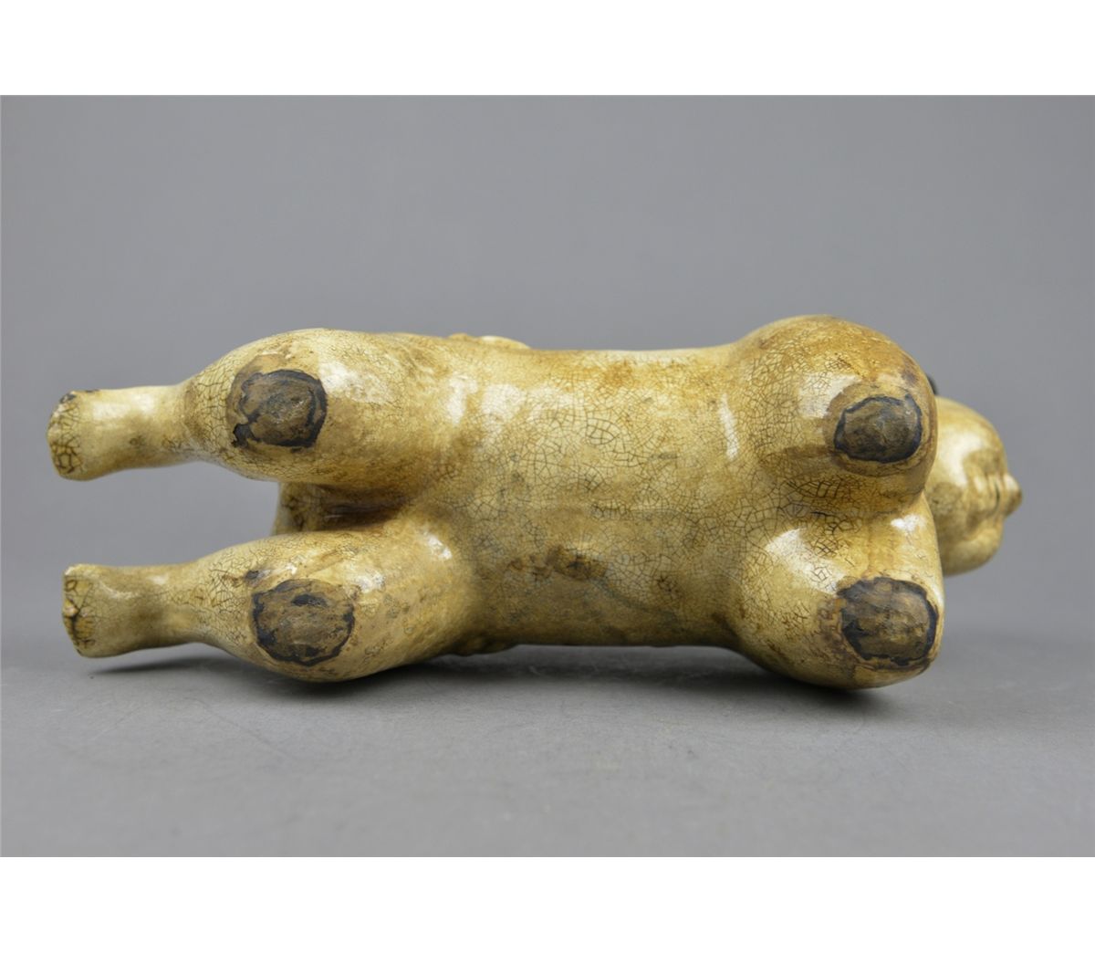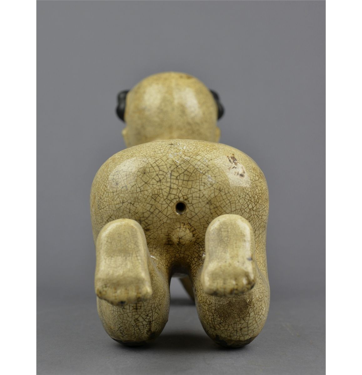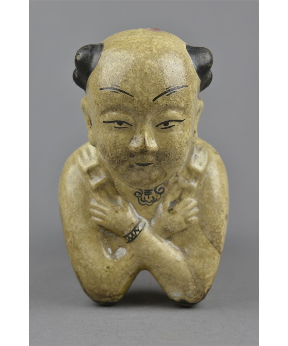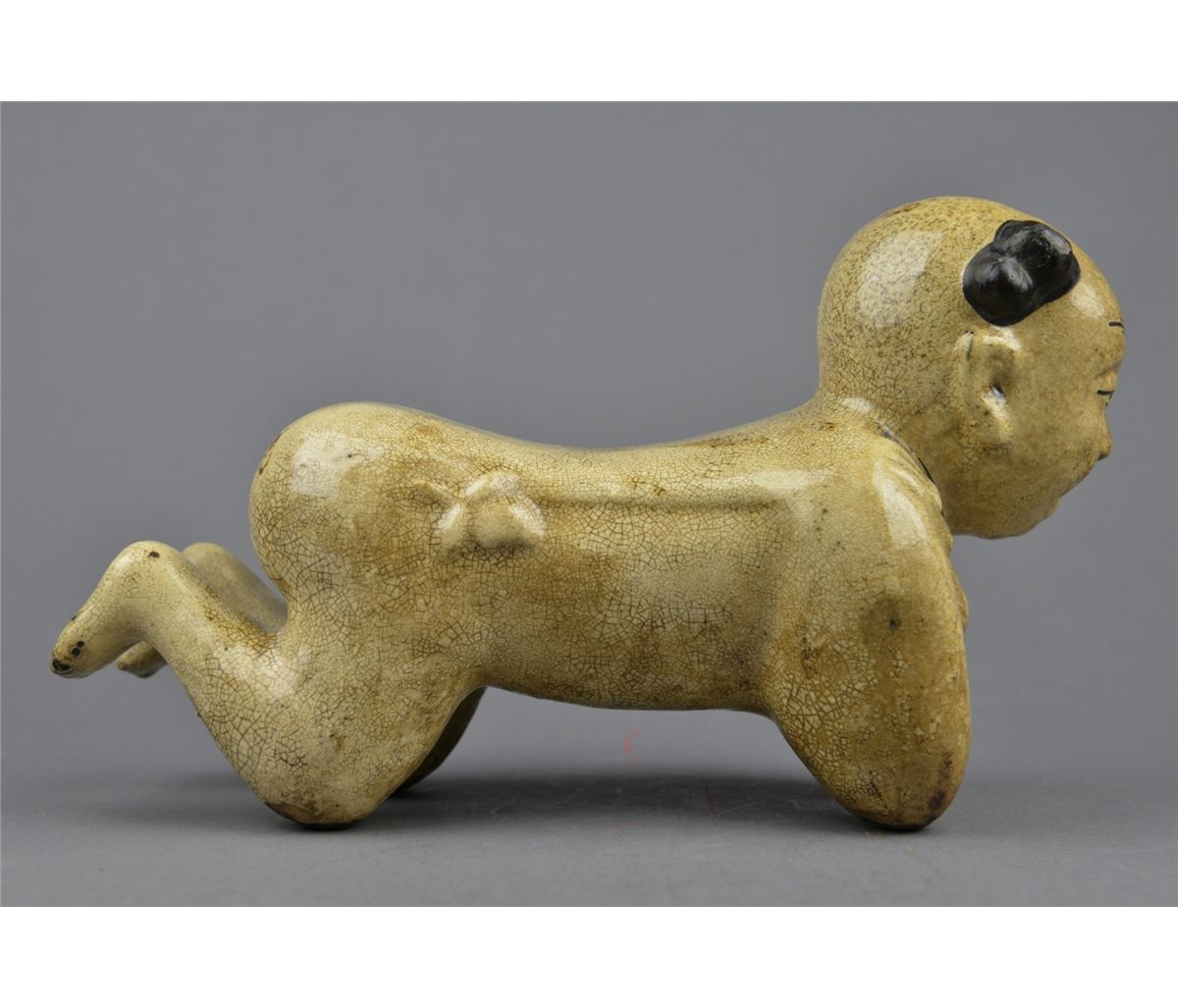 Chinese porcelain pillow in form of boy; L: 26 cm, H: 16 cm