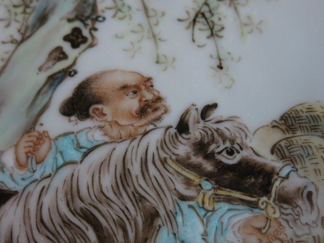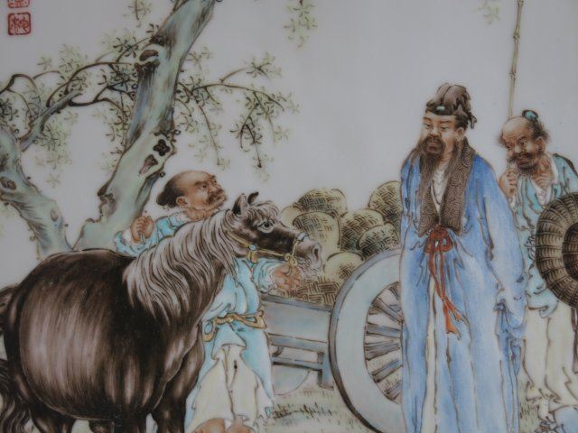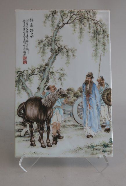 Depicting 3 men & horse. In box. Approx. 15" H x 9 3/4" W.