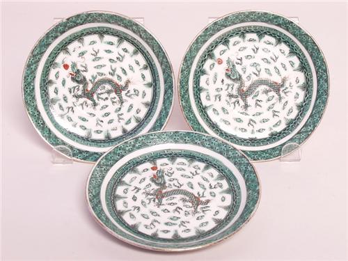 Description: Three, Green Dragon Pattern. 4 Character Mark.