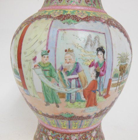 Signed on bottom. Depicting a scholar in a garden setting. Approx. 20 H. X 9.5".