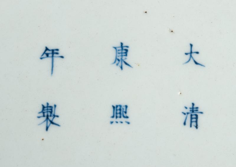 Finely molded to depict chi dragons, having a six character in underglaze blue, 3.25"H X 5"D