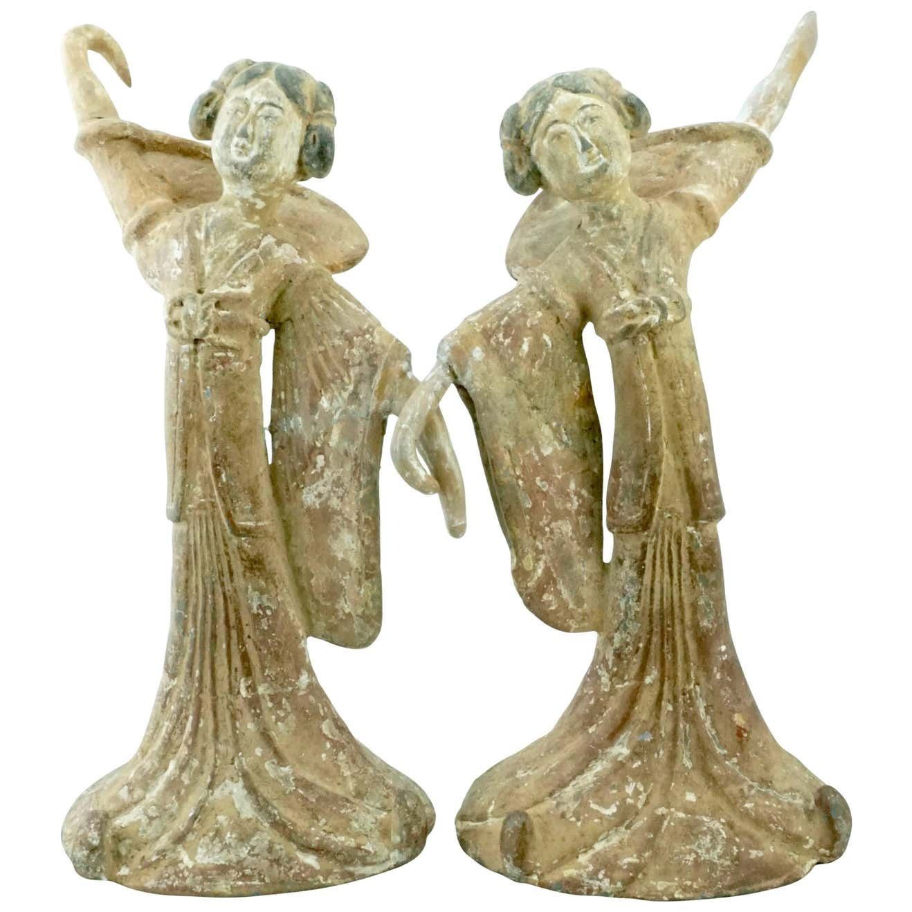 Chinese Pottery Painted Lady Statue Pair, decorated with pottery painted. It was created by skilled craftsmen in traditional style with fine handcrafts. the handwork is very fine with incredible detailling. This is a great piece of valuable collection, a valuable personal alter or a very good present. Don't miss out this chance to get it .Good luck to you!H 33 cm + W 17.7 cmProvenance: A Private Collector Collection From "San Francisco"