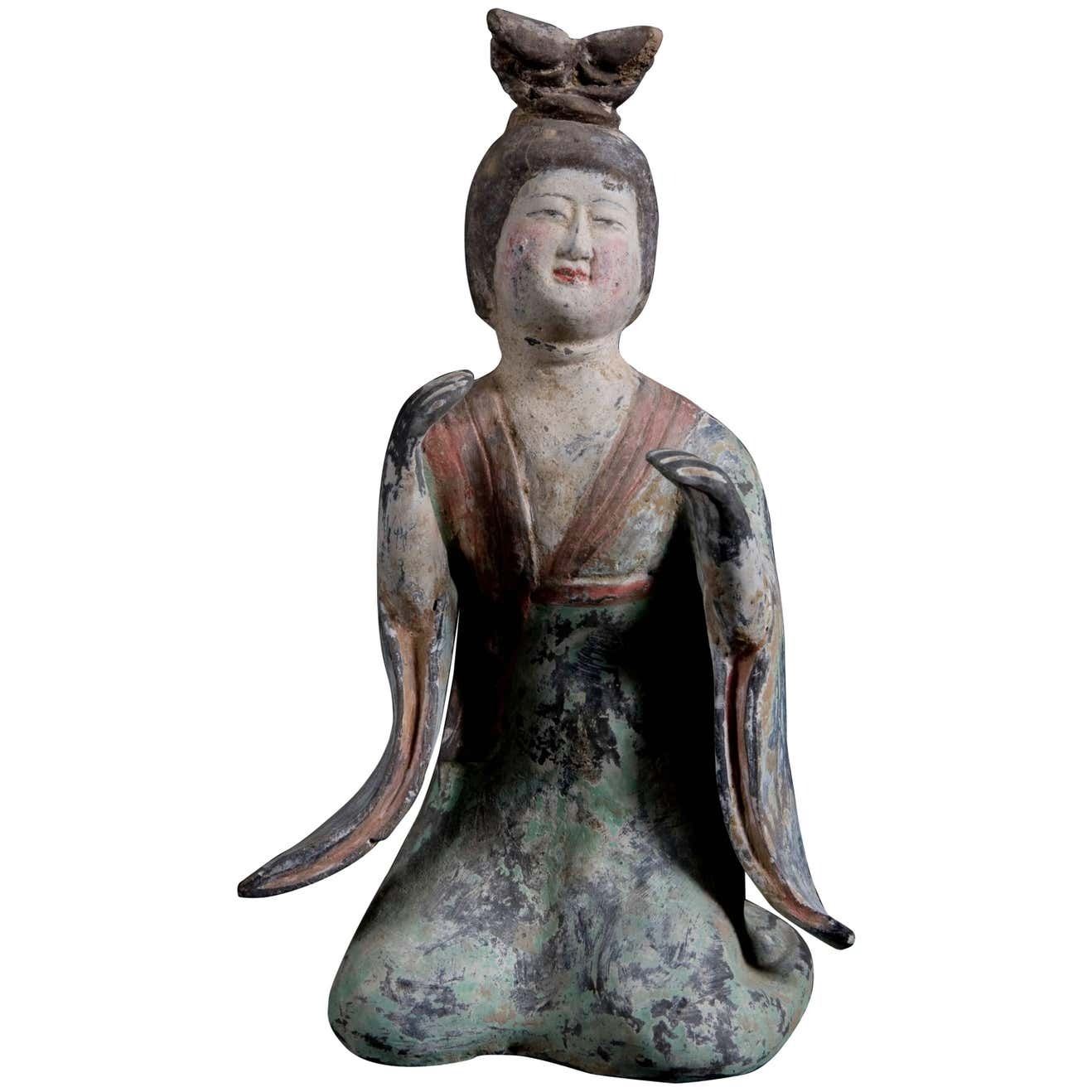 Chinese Pottery Painted Lady Statue, decorated with pottery painted glaze. It was created by skilled craftsmen in traditional style with fine handcrafts. the handwork is very fine with incredible detailling. This is a great piece of valuable collection, a valuable personal alter or a very good present. Don't miss out this chance to get it .Good luck to you!H 17.7 cm + W 10.1 cmProvenance: A Private Collector Collection From "Canada"
