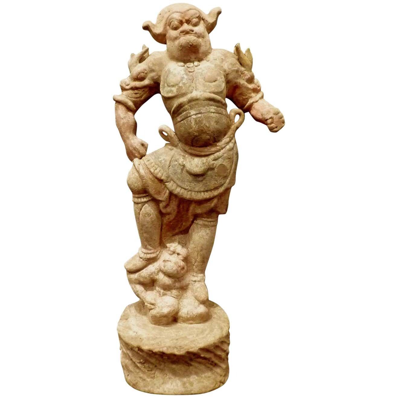 Chinese Pottery Terracotta Man Statue, decorated with pottery painted. It was created by skilled craftsmen in traditional style with fine handcrafts. the handwork is very fine with incredible detailling. This is a great piece of valuable collection, a valuable personal alter or a very good present. Don't miss out this chance to get it .Good luck to you!H 55.8 cm + W 20.3 cmProvenance: A Private Collector Collection From "Hongkong"
