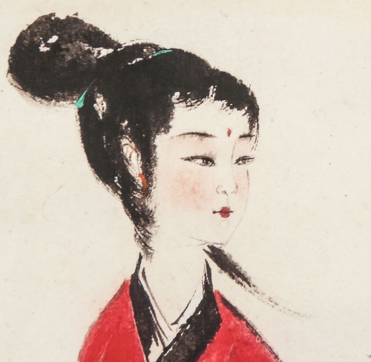 Print on paper scroll. Featuring an ethereal woman in red. Inscribed with one seal. 35 x 43 cm