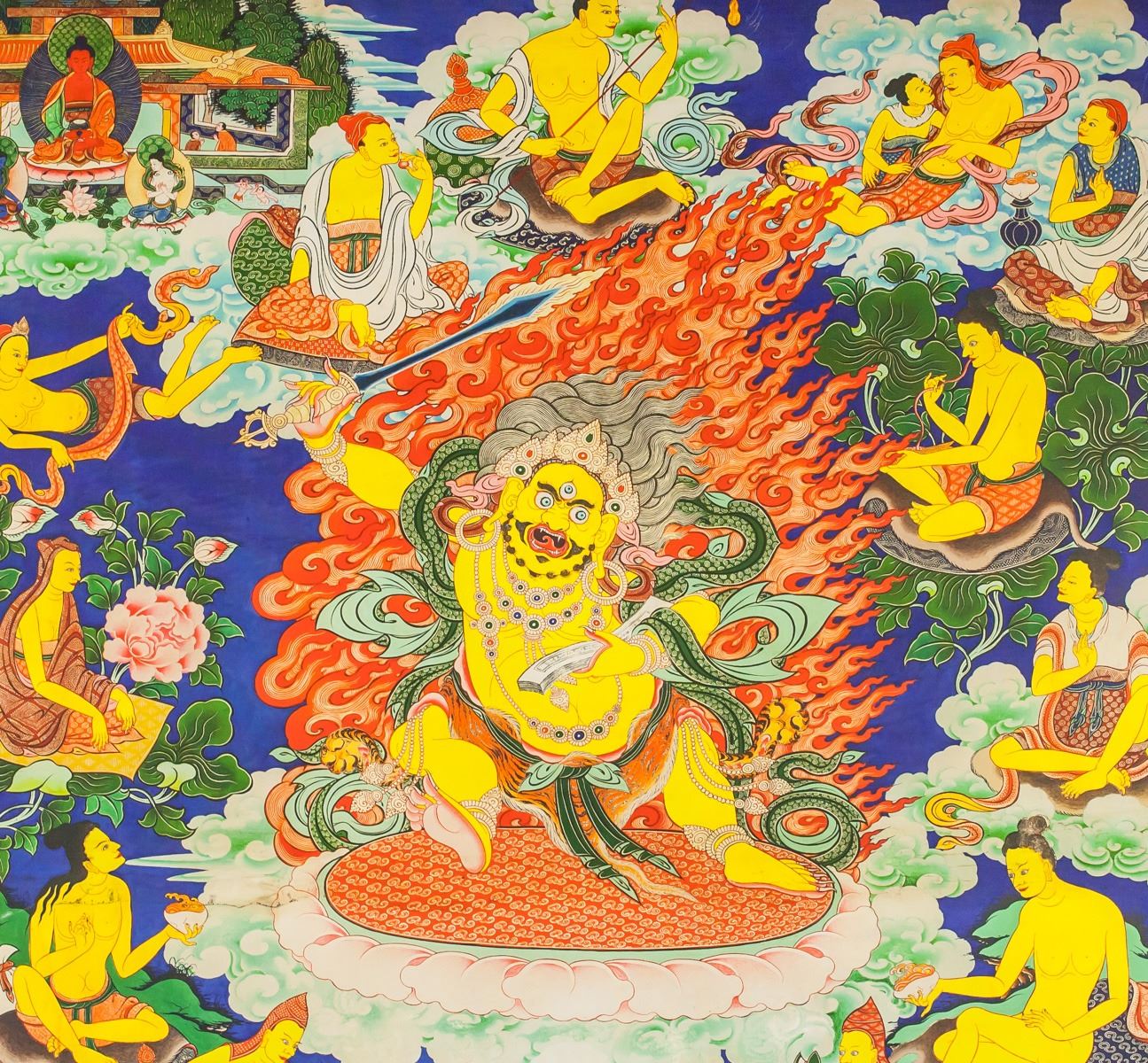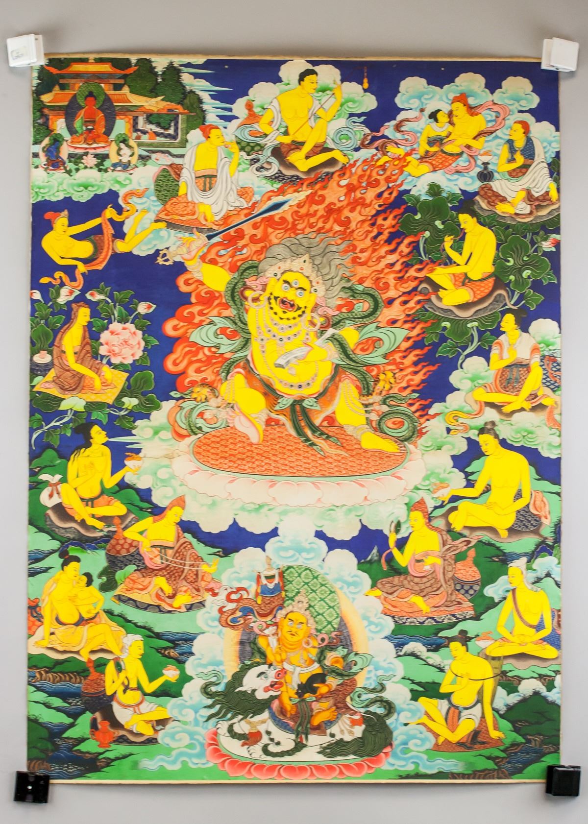 Chinese print on fabric. Featuring protective deity. 89 x 66 cm