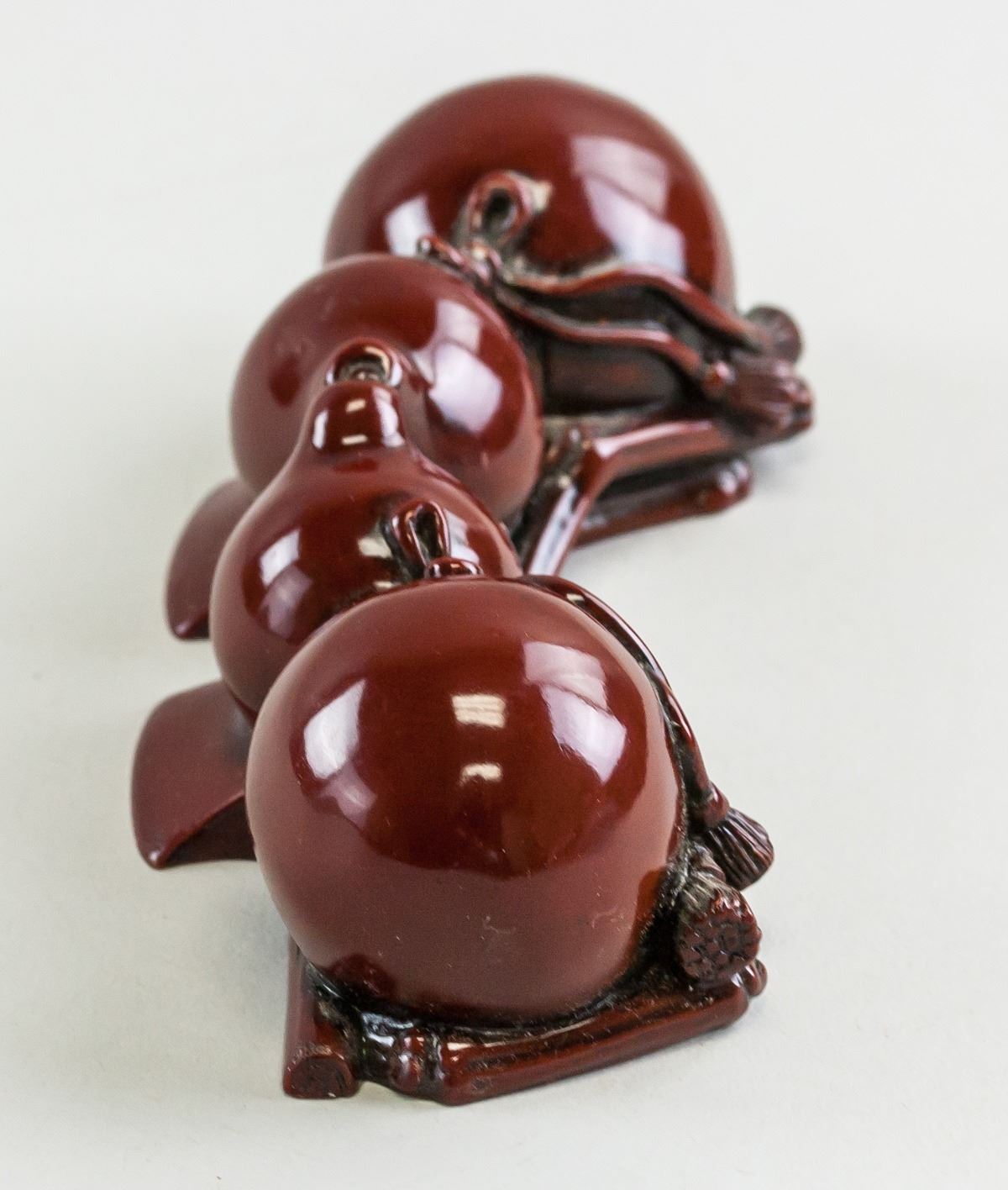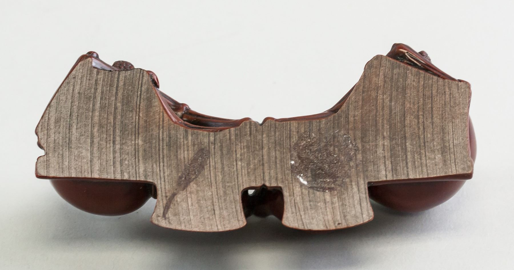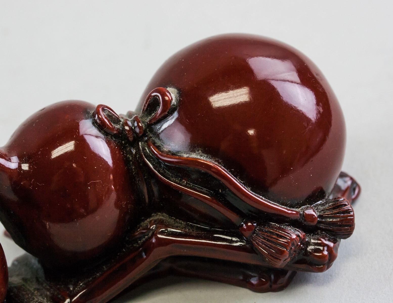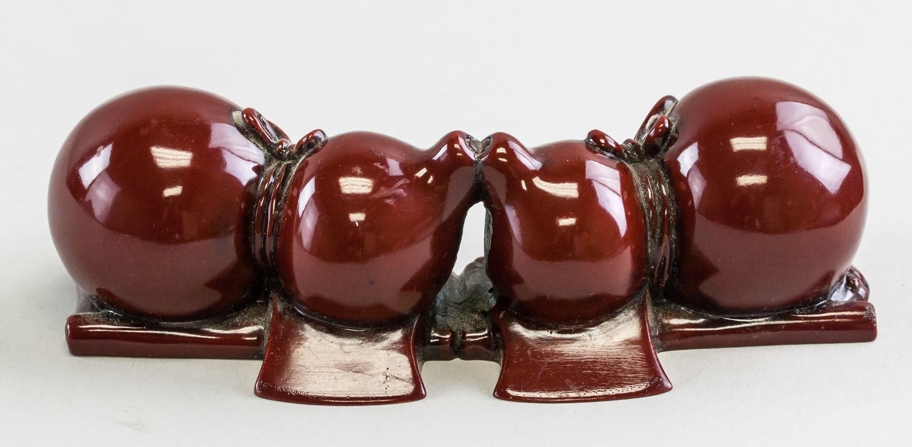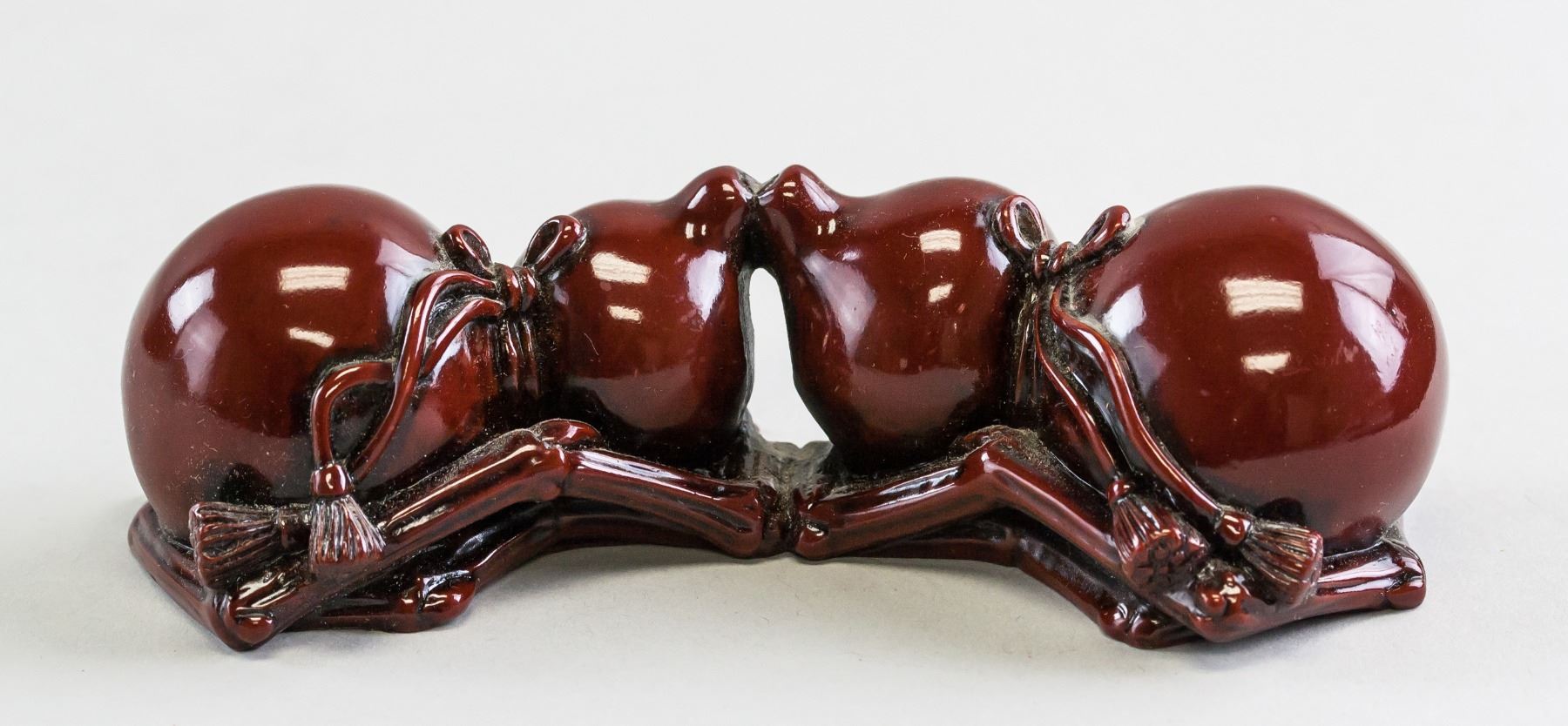 Chinese porcelain brush rest. Of purple red color. Of two gourds facing each other. Highly polished. 6 x 14 cm, 335 grams