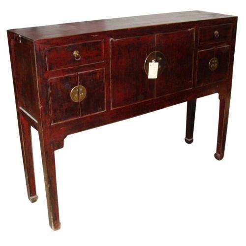 The antique furniture is a set of exquisite chinese Qing dynasty's console table made of wood gathered from Hebei province in China.A wonderful piece for a room that can hold it.At the beginning of the Qing Dynasty, furniture followed Ming patterns and styles.Qing Furniture showed its own uniqueness with the absorption of western art. It was larger in size with grandeur and pageantry.Engraving was a popular and important means of furniture decoration. The subjects range from auspicious character patterns, to geometric patterns and scenes in nature with animals, mountains and waters, flowers and grass. Color painting, especially gold painting, was widely used.Commercial symbols emerged, such as patterns concerning money and fortune.To later Qing furniture has less engraving ,instead ,inlays of stone, which catch the eye more easily than exquisite engraving, are used to tell of the luxurious lifestyle of the owner. In addition, color and gold painting become the vogue depicting the preference for gaudiness by the wealthy.
