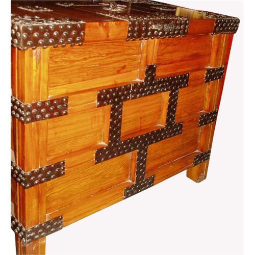 The antique furniture is a piece of exquisite chinese Qing dynasty's treasure trunk made of wood gathered from Shanxi province in China.A wonderful piece for a room that can hold it.At the beginning of the Qing Dynasty, furniture followed Ming patterns and styles.Qing Furniture showed its own uniqueness with the absorption of western art. It was larger in size with grandeur and pageantry.Engraving was a popular and important means of furniture decoration. The subjects range from auspicious character patterns, to geometric patterns and scenes in nature with animals, mountains and waters, flowers and grass. Color painting, especially gold painting, was widely used.Commercial symbols emerged, such as patterns concerning money and fortune.To later Qing furniture has less engraving ,instead ,inlays of stone, porcelain and bone, which catch the eye more easily than exquisite engraving, are used to tell of the luxurious lifestyle of the owner. In addition, color and gold painting become the vogue depicting the preference for gaudiness by the wealthy.