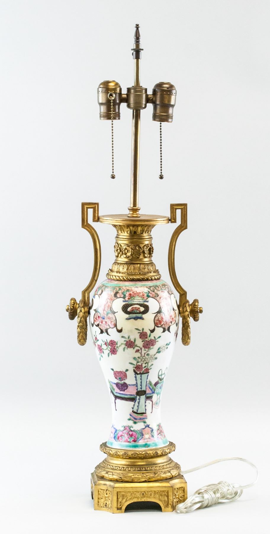 Chinese Qing Period Famille Rose with Omaru Metal stand lamp base. Featuring floral and decorative patterns. 25 x 20 cm, 4.543 grams