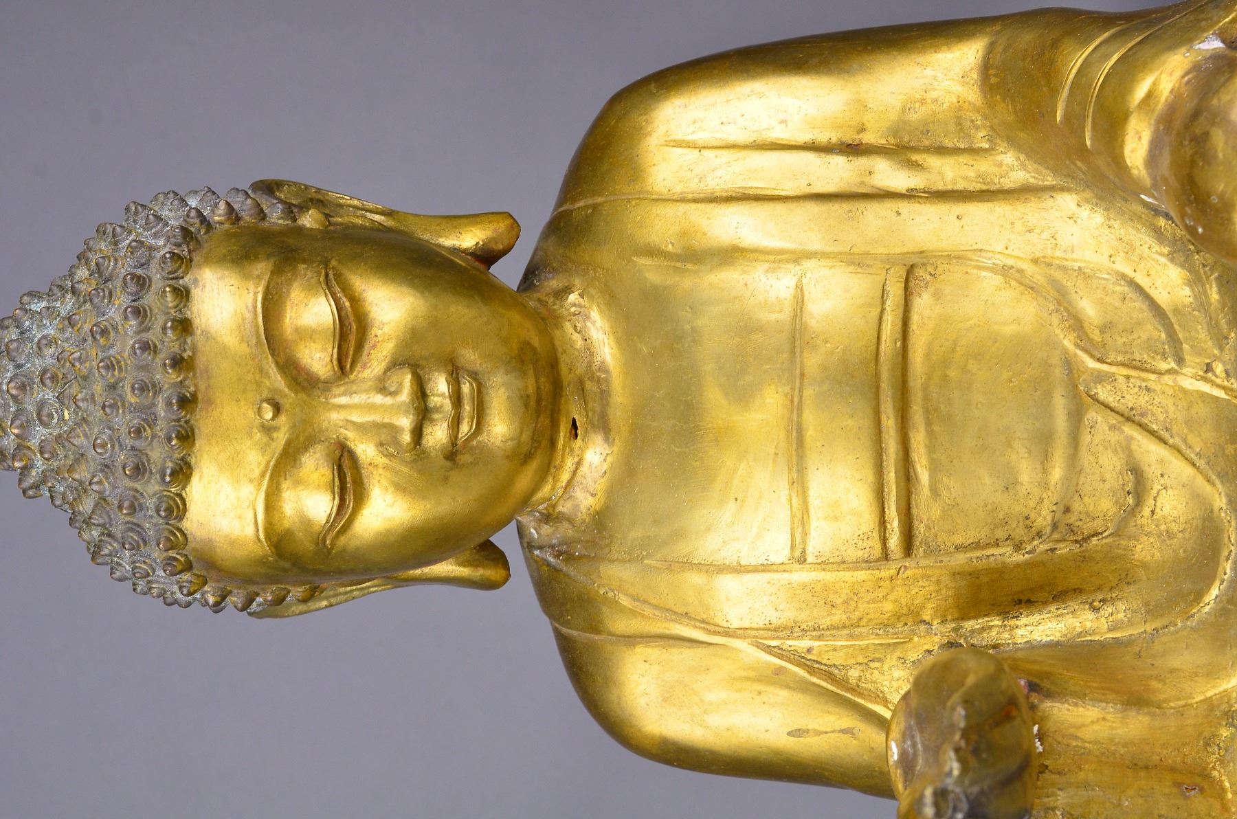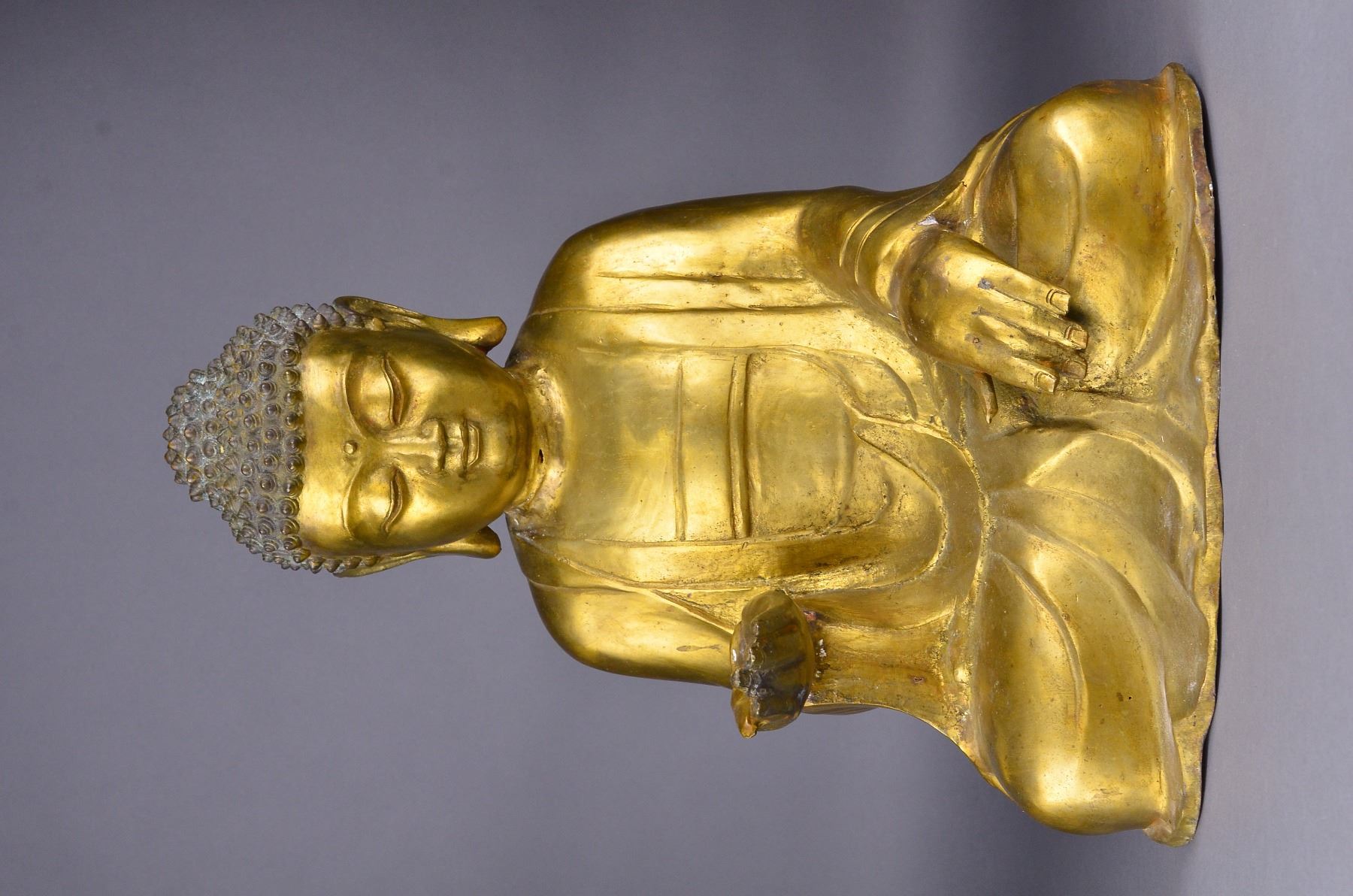 Chinese Qing Period gilt bronze figure featuring seated Guanyin. H: 43 cm, L: 33 cm, W: 20 cm, this lot has been relisted due to non-paying bidder Xinchun Li from Flushing, New York.
