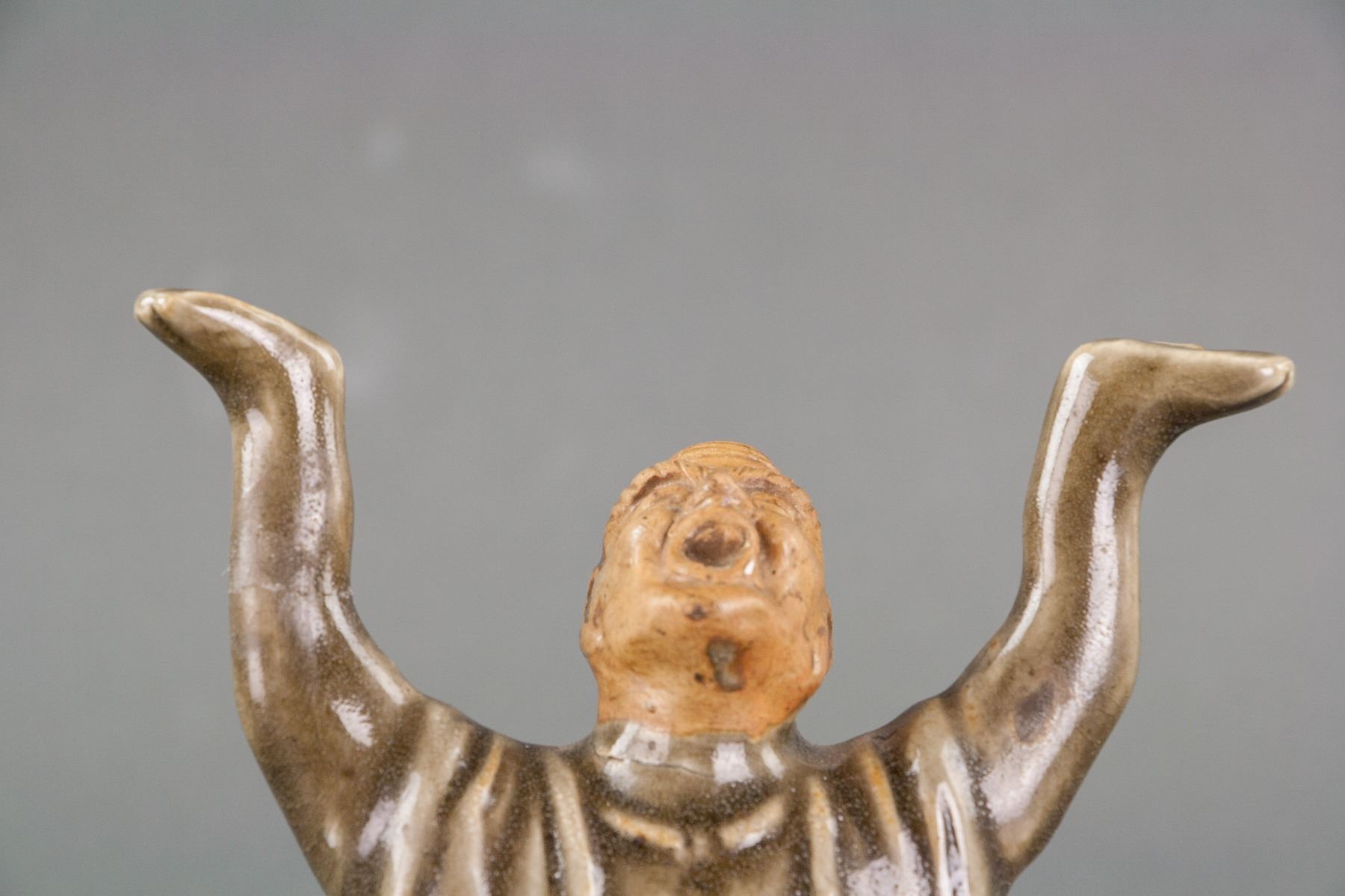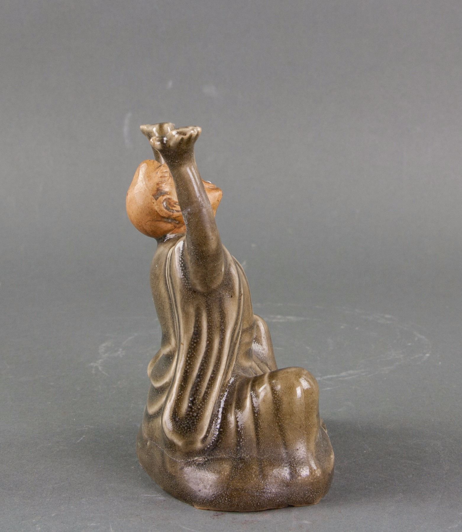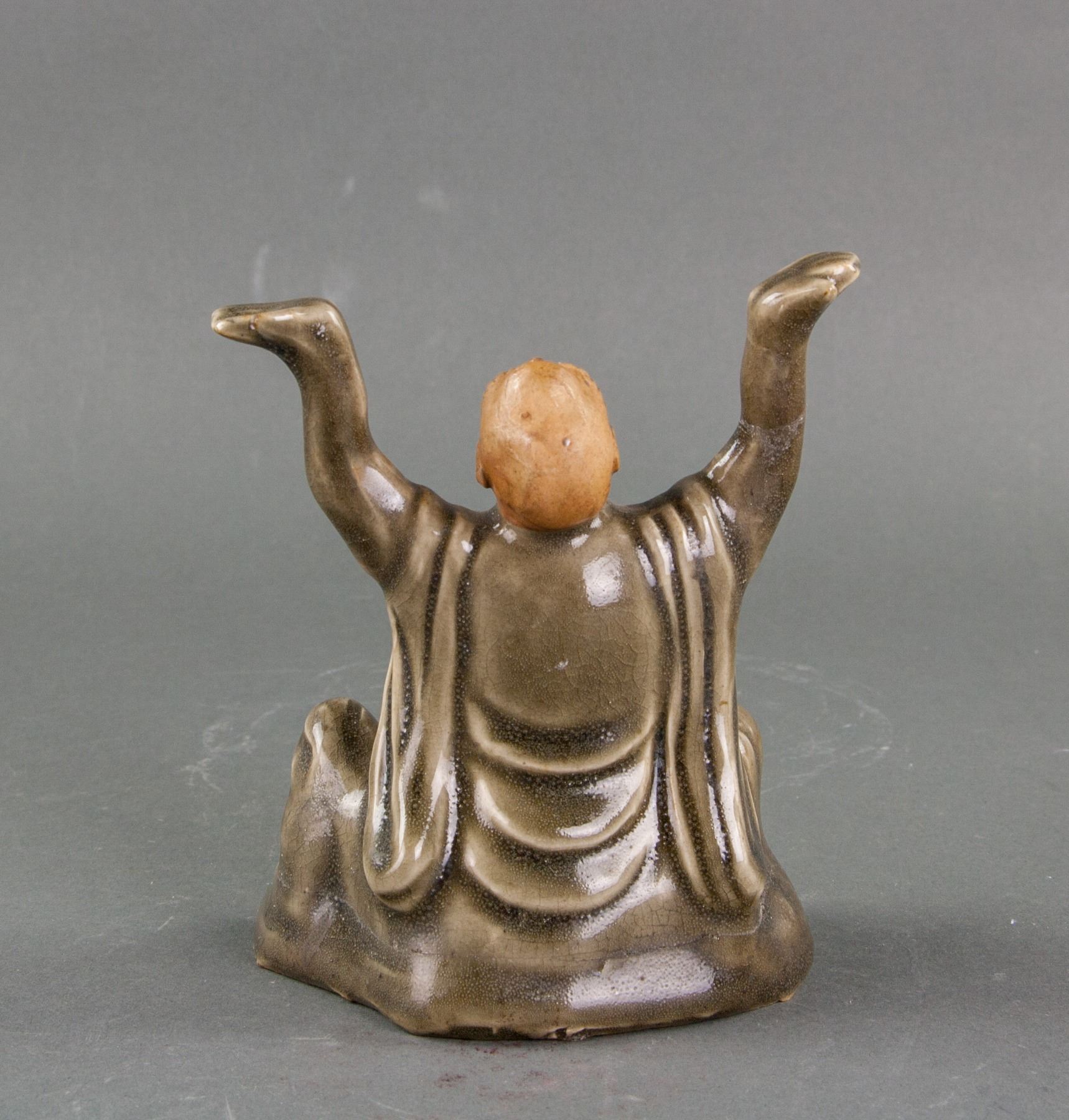 Chinese porcelain lohan statue; depicting the laughing lohan; covered by brown glaze; Qing period; 14 cm x 12 cm, 461 grams