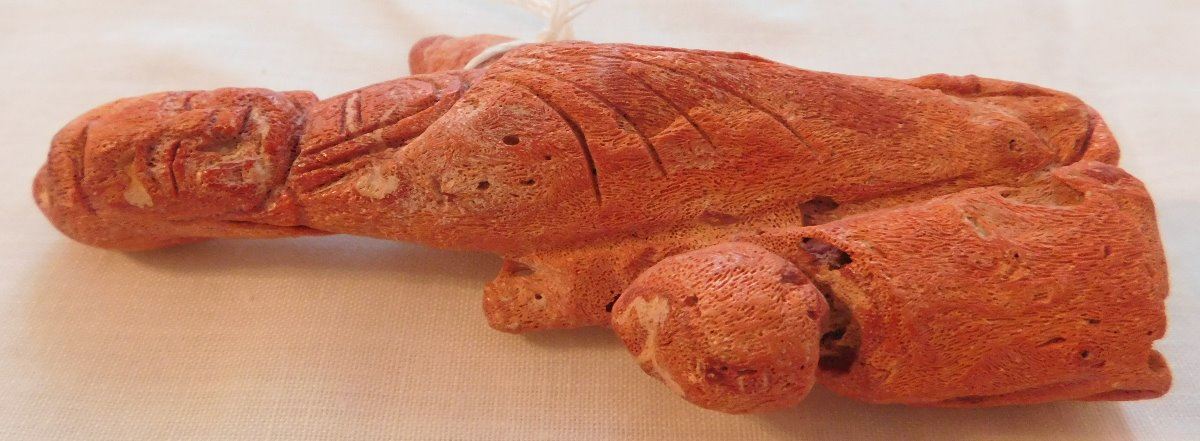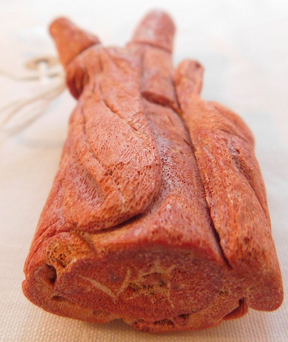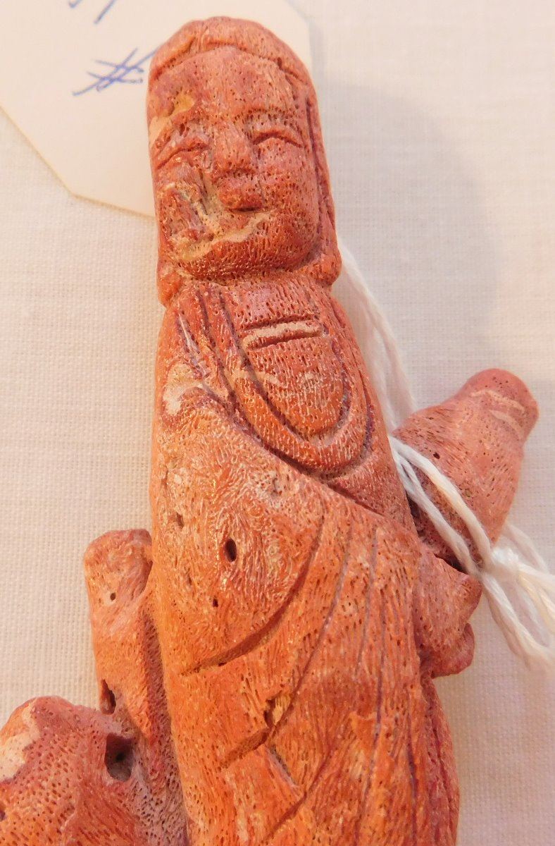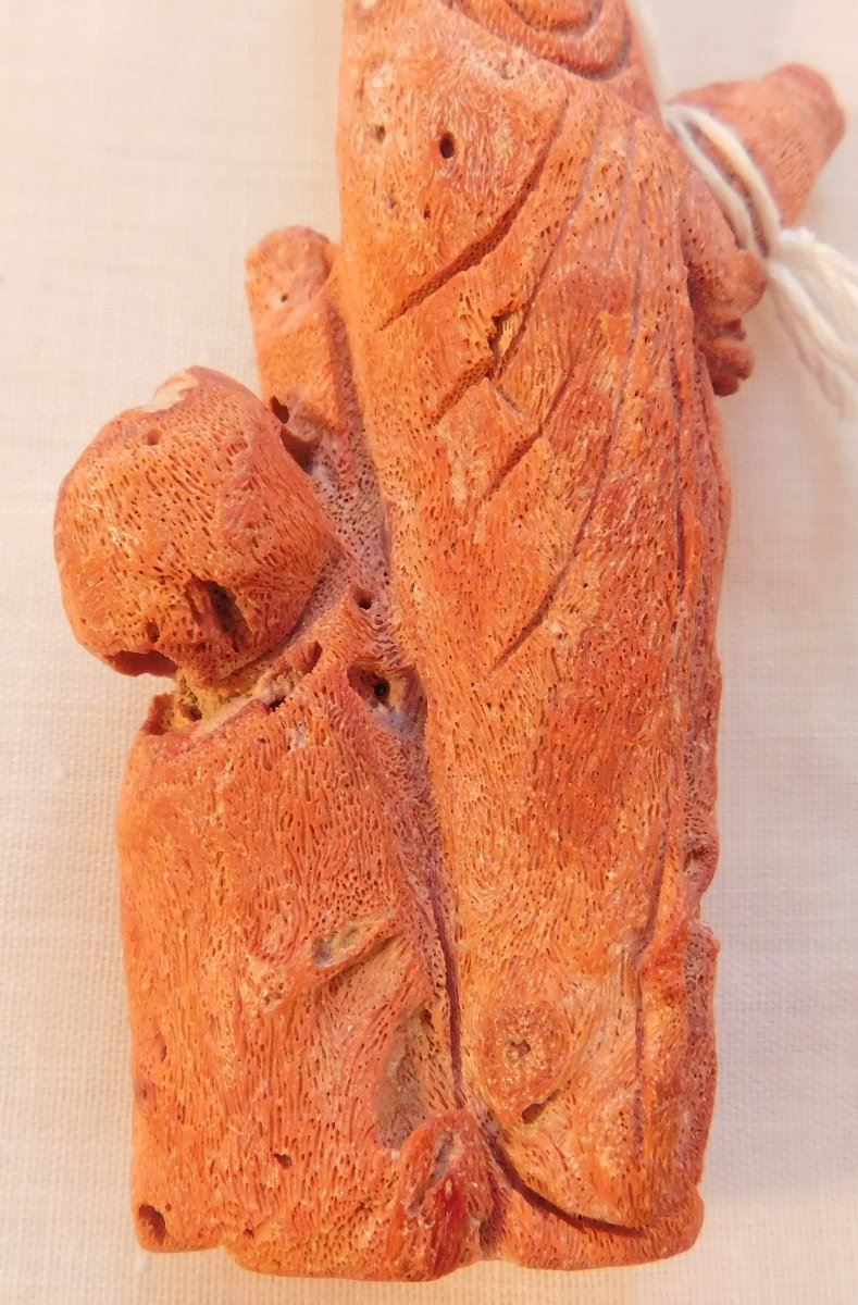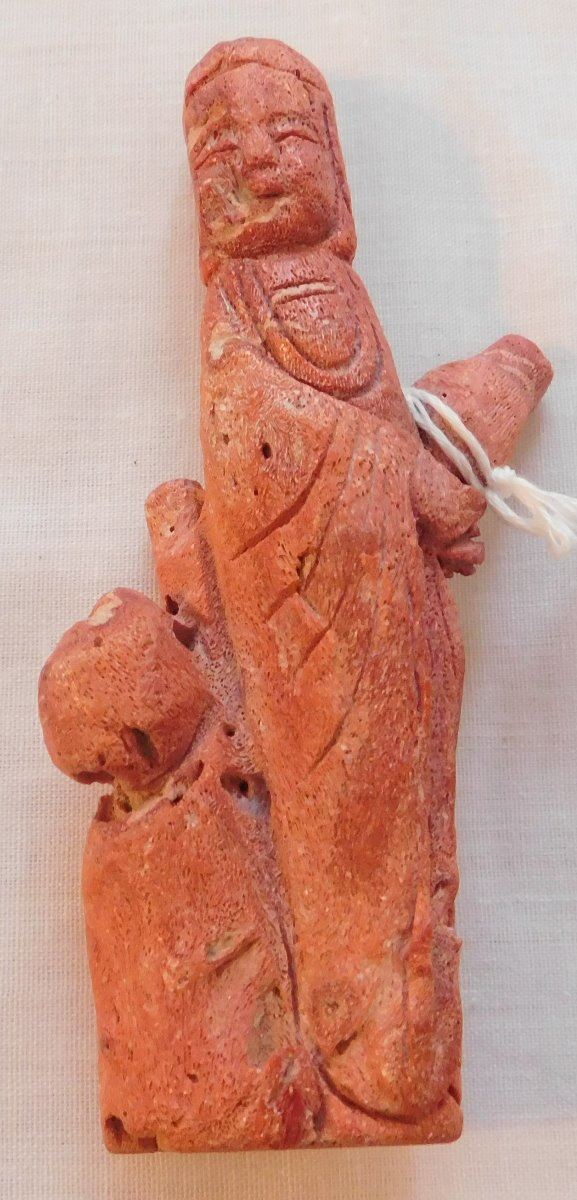 Chinese Red Apple Coral Figure, Ming dynasty. Made of red coral and measuring 2.25" x 1" x 4.75", China. Nice carving, classic antique. Condition: Good, see images. Shipping: $20.00 w/insurance and signature.