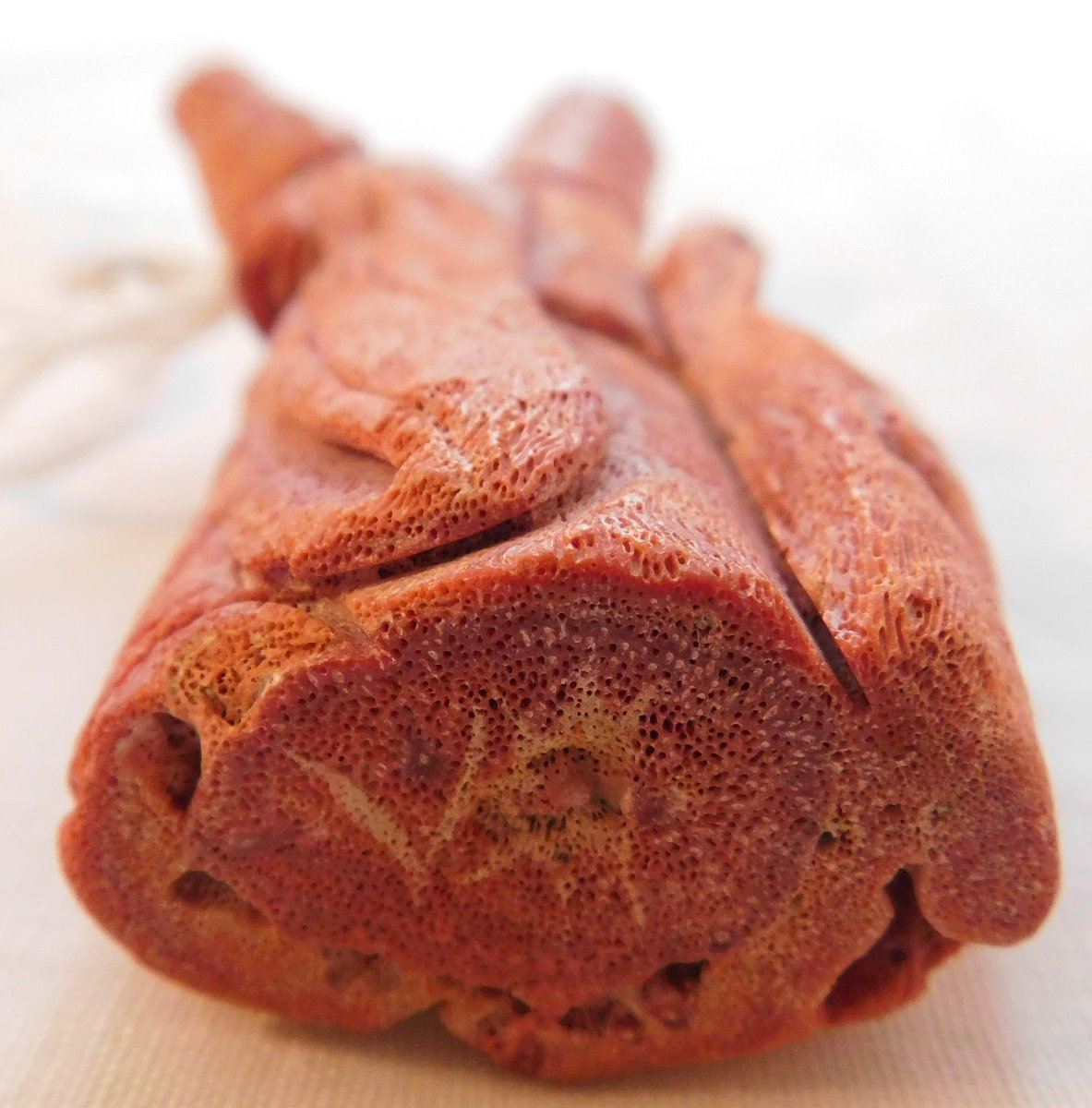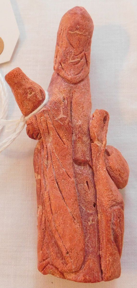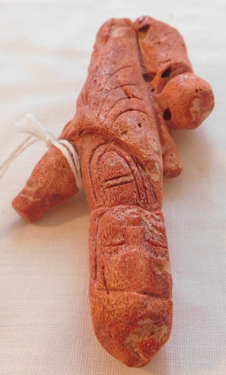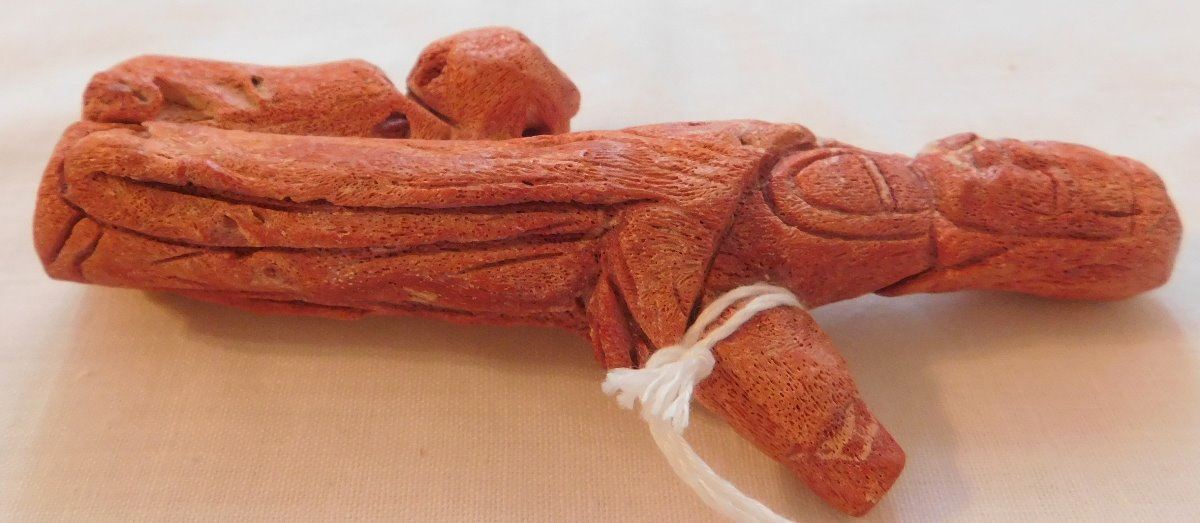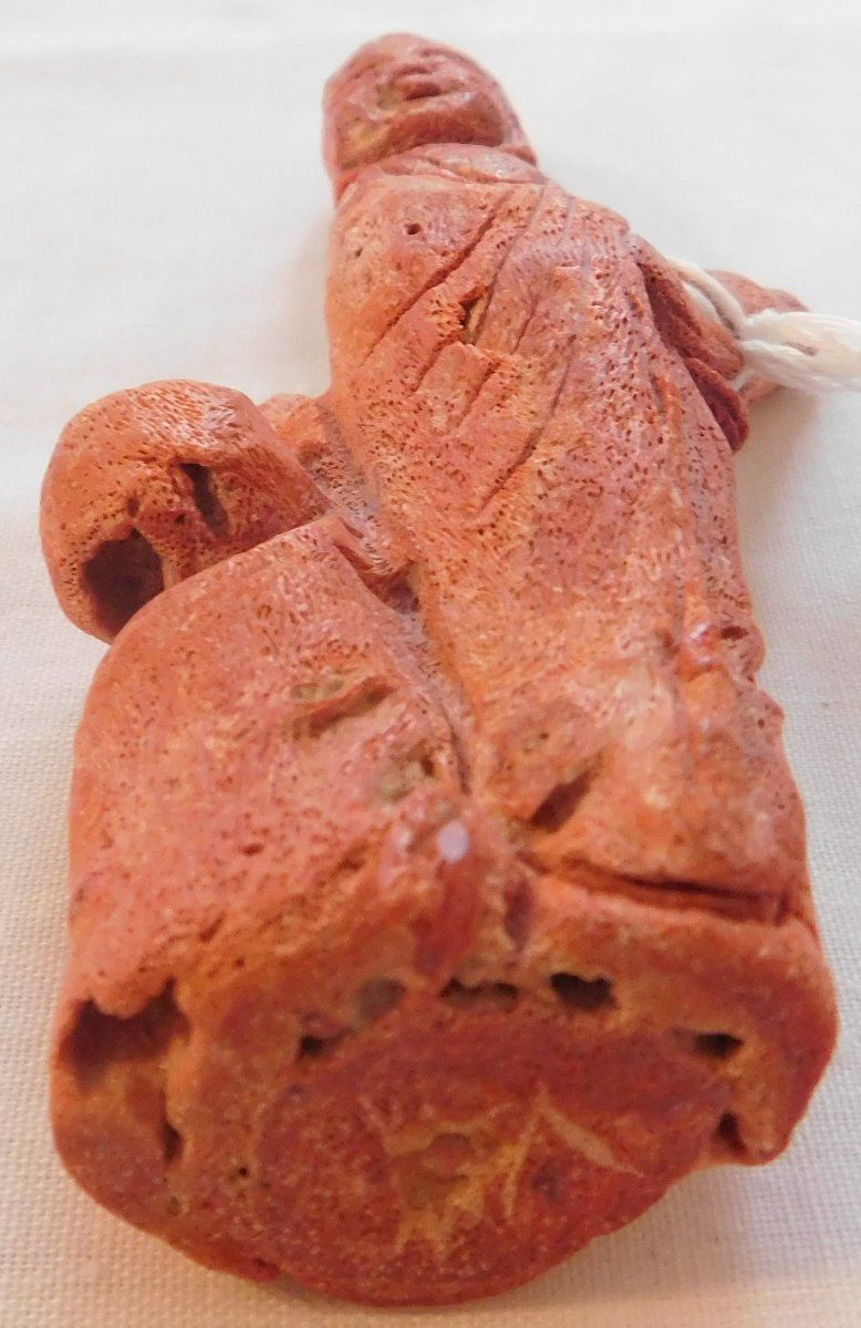 Chinese Red Apple Coral Figure, Ming dynasty. Made of red coral and measuring 2.25" x 1" x 4.75", China. Nice carving, classic antique. Condition: Good, see images. Shipping: $20.00 w/insurance and signature.