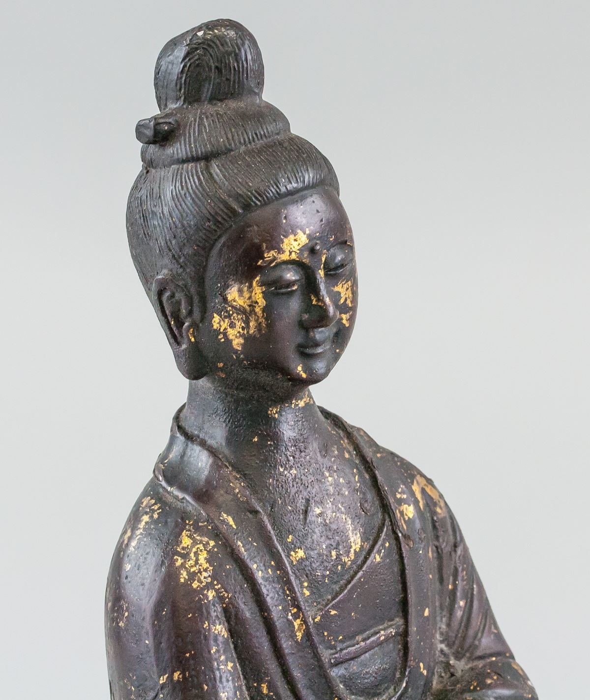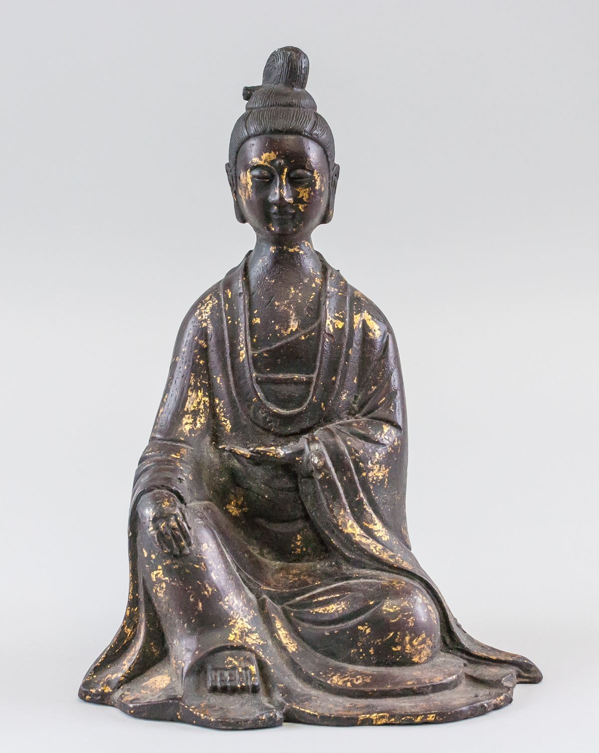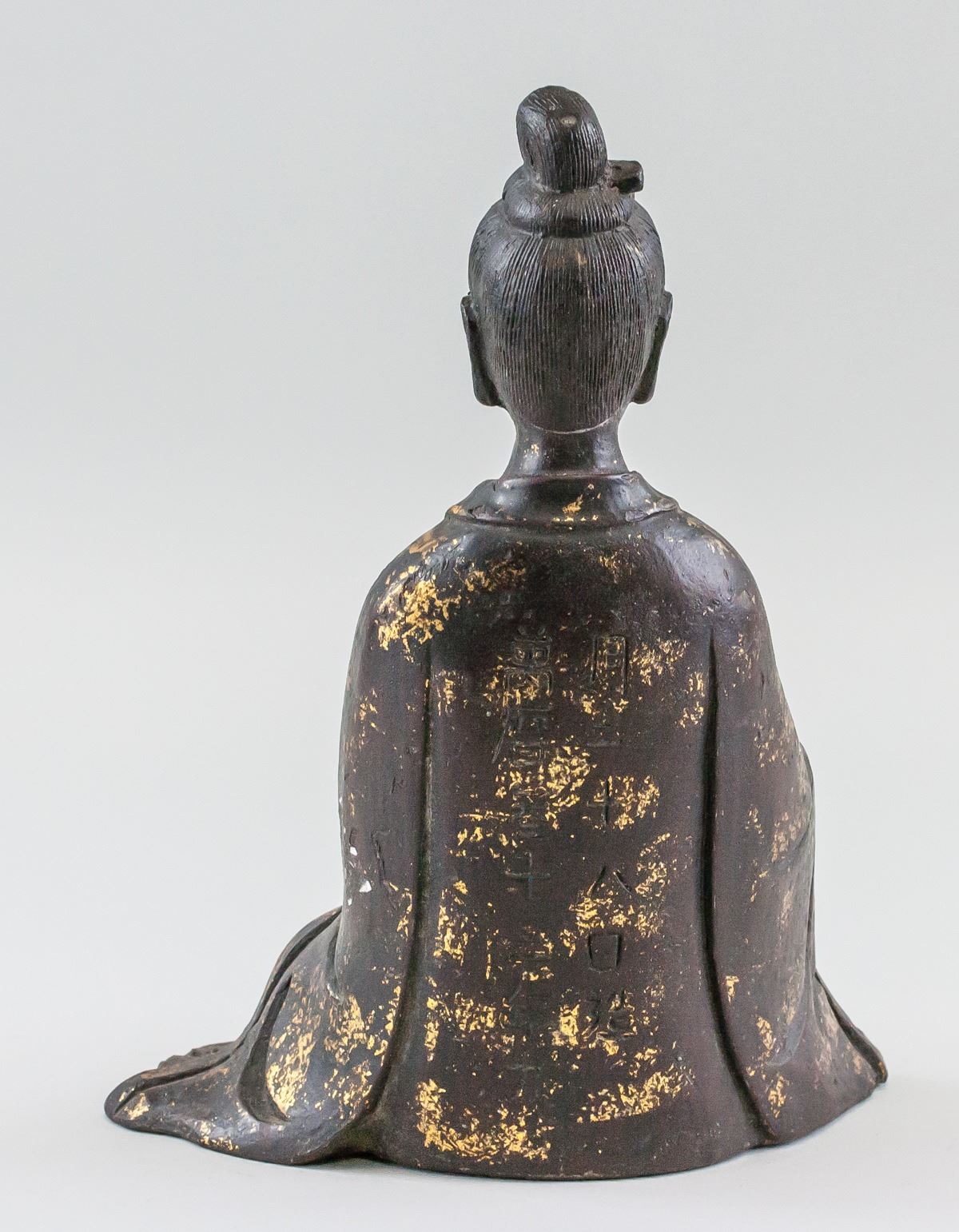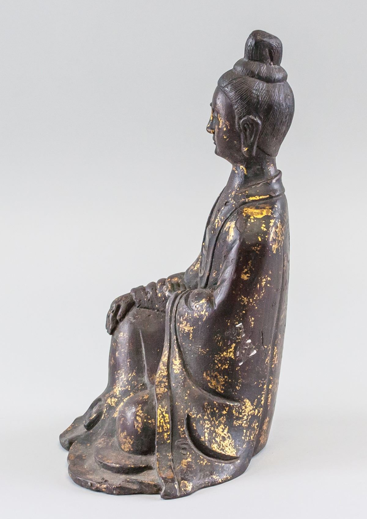 Chinese red copper gilt statue. Featuring a seated Buddhist patron. Ming dynasty Wanli mark on back.23 x 19 cm, 1258 grams