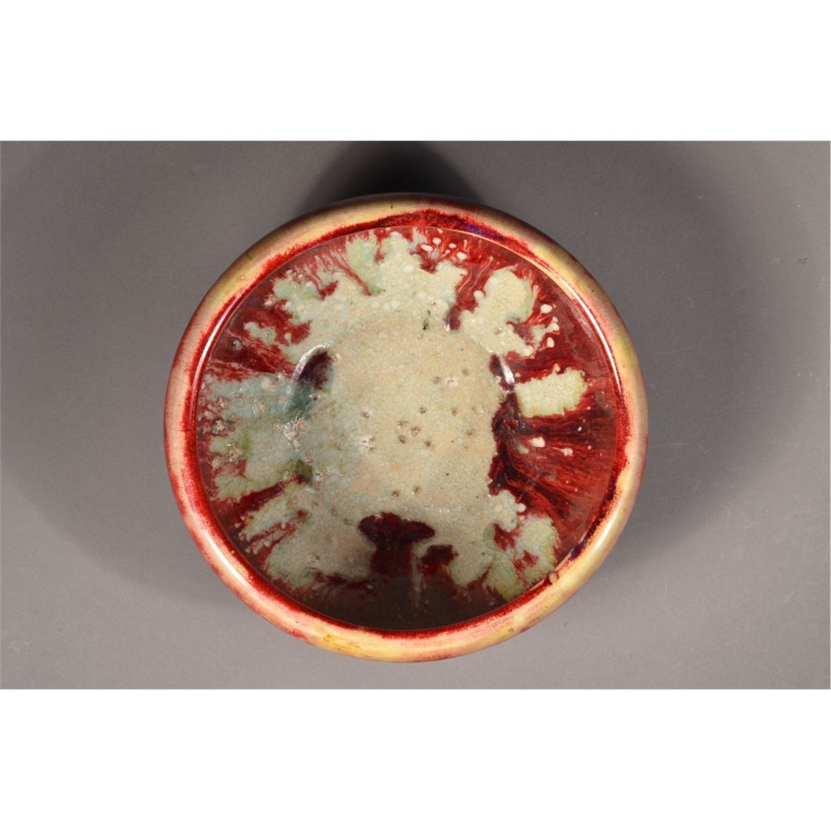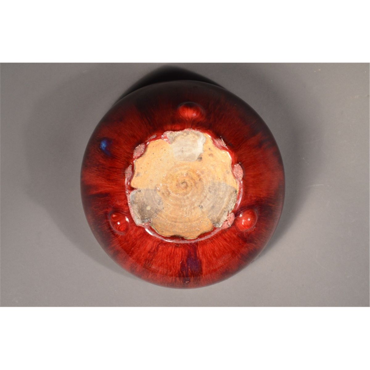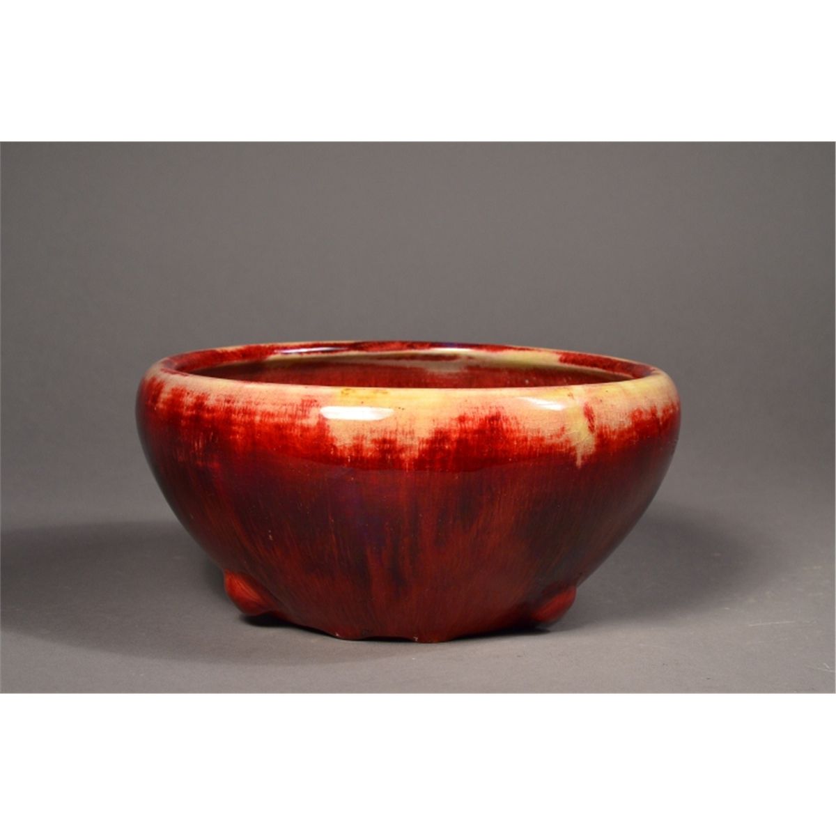Chinese red flambe glazed porcelain bowl: the exterior with three nodules; the interior with kiln grid; possibly 19th Century; 4" tall, 81/4" diameter