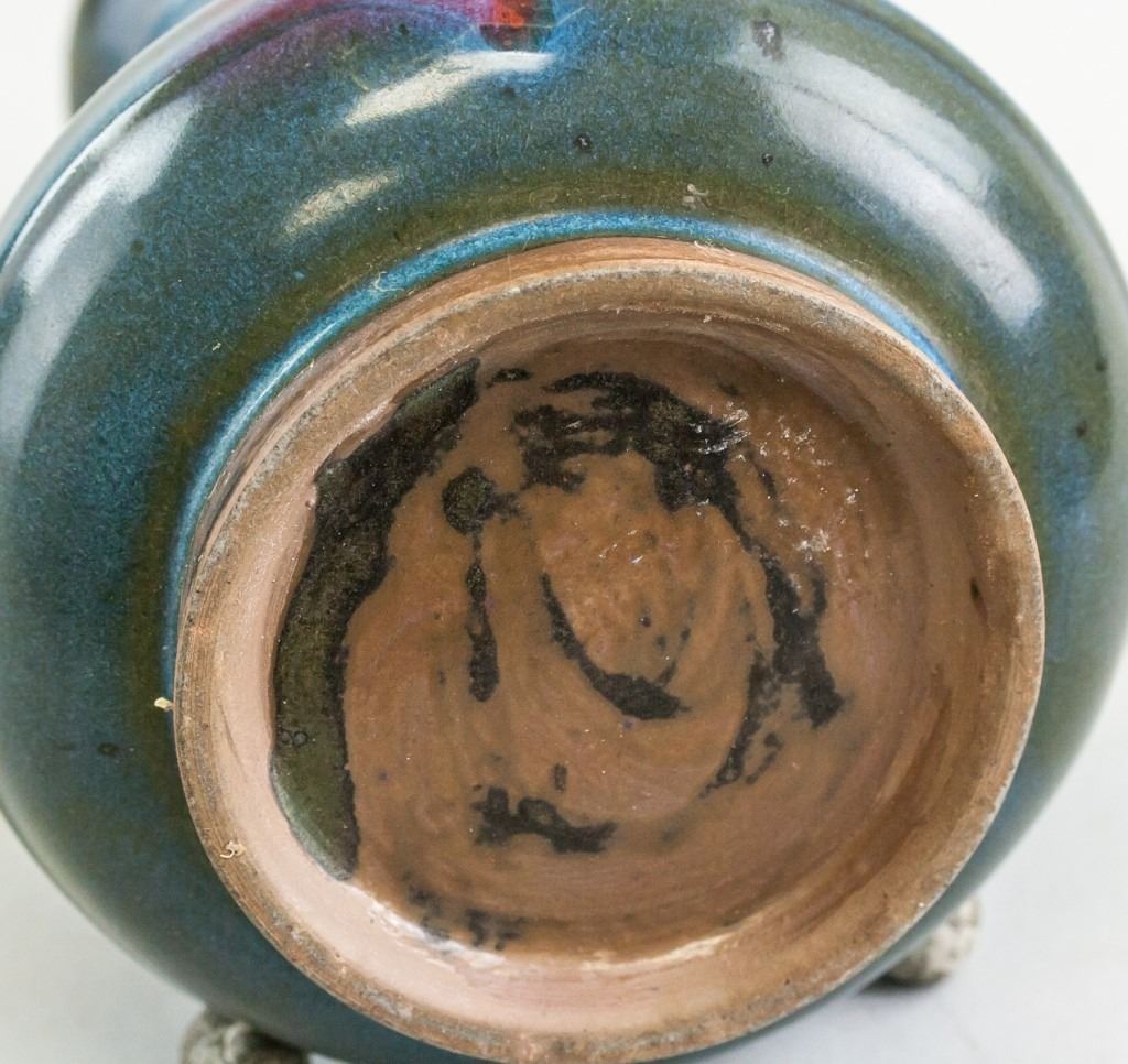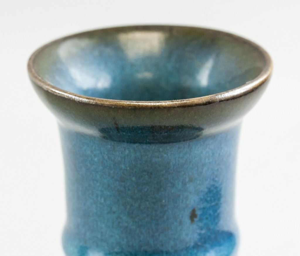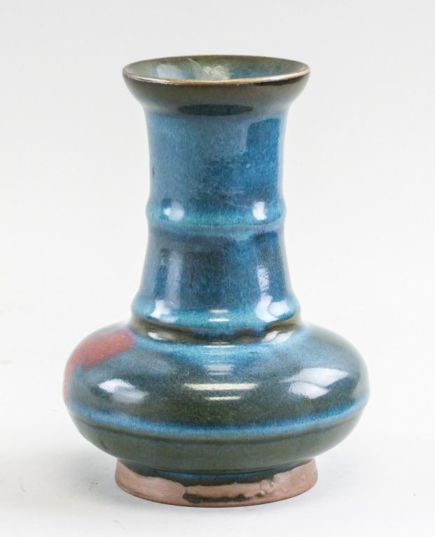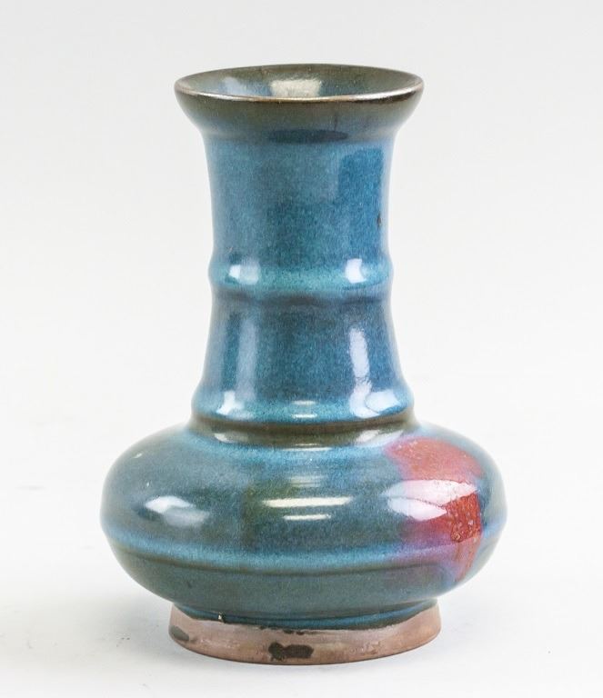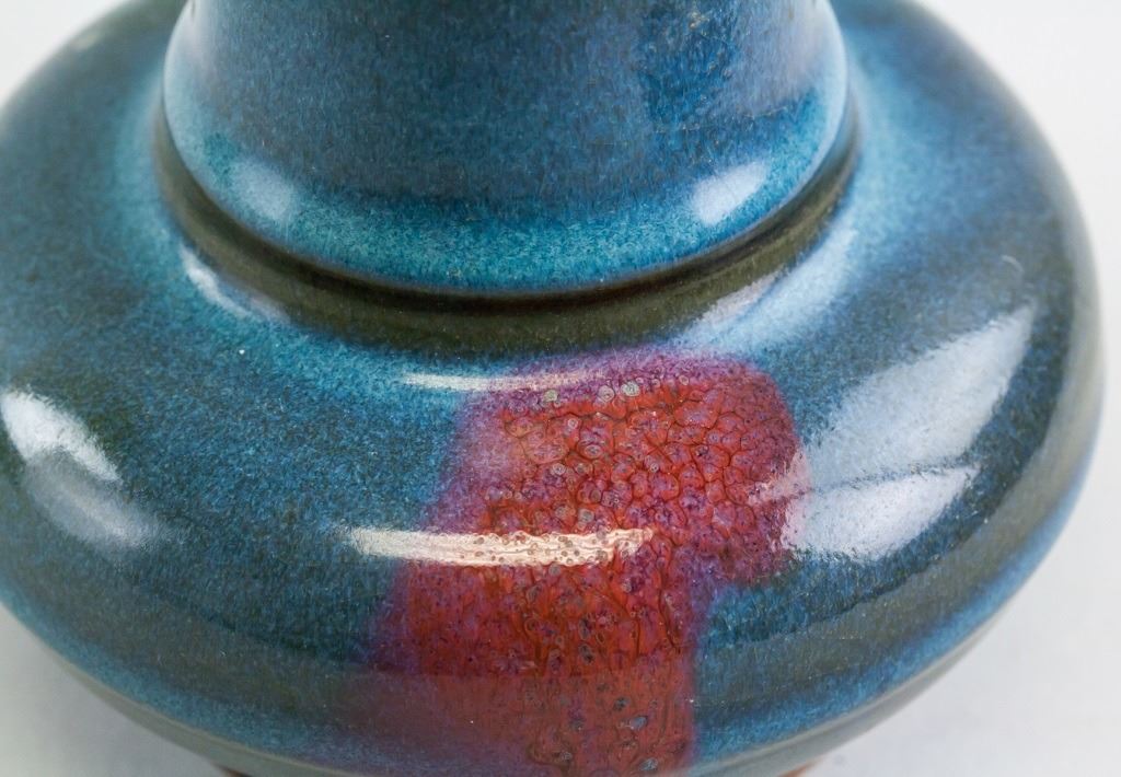 Chinese junyao vase. Of red and blue tone. With rounding opening, ridged neck, and a squat ovid body. 15.5 x 10.5 cm, 578 grams.