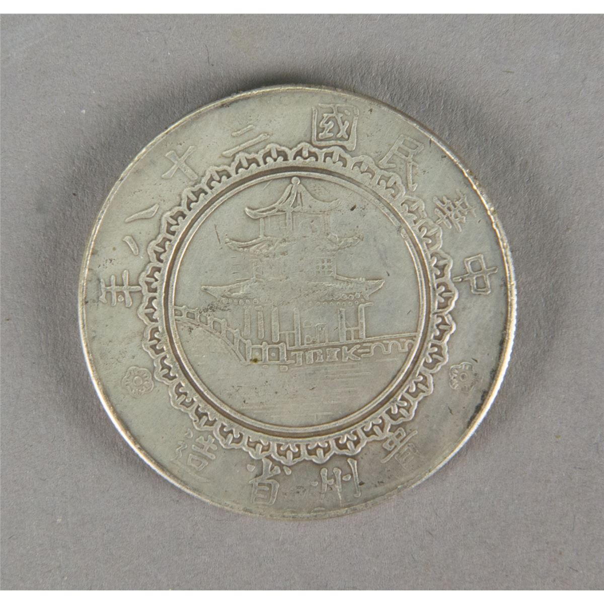 Chinese Republic One Yuan Silver Coin; D: 4 cm, Thickness: 0.23 cm, 22 grams, silver not tested for purity; Provenance: private Canadian coin collector