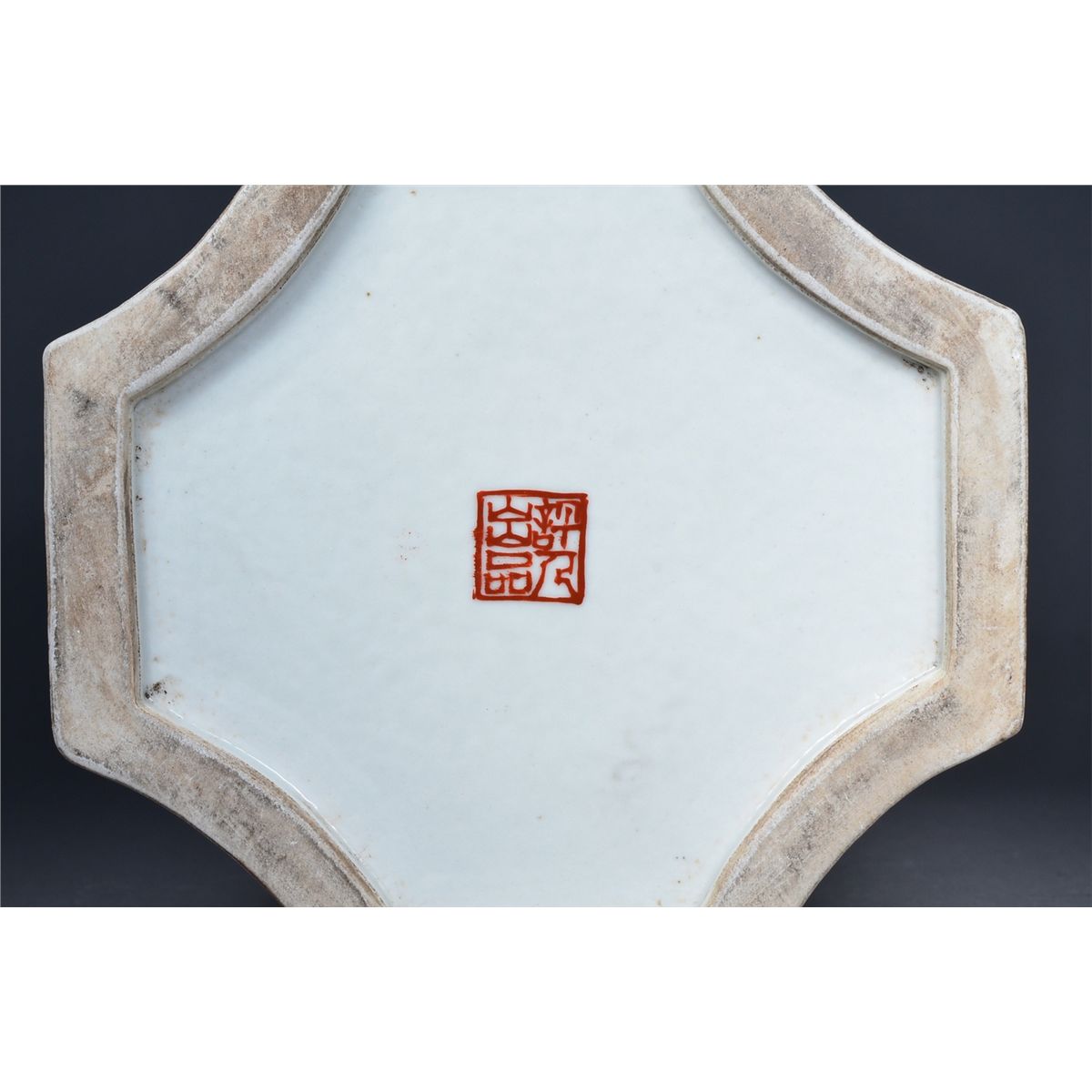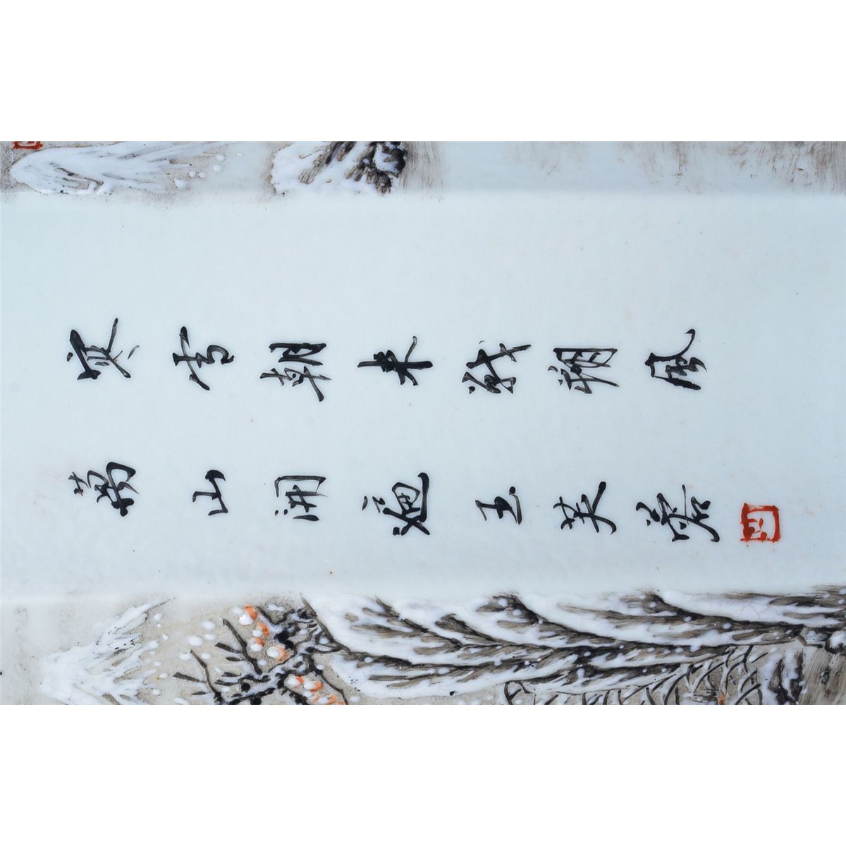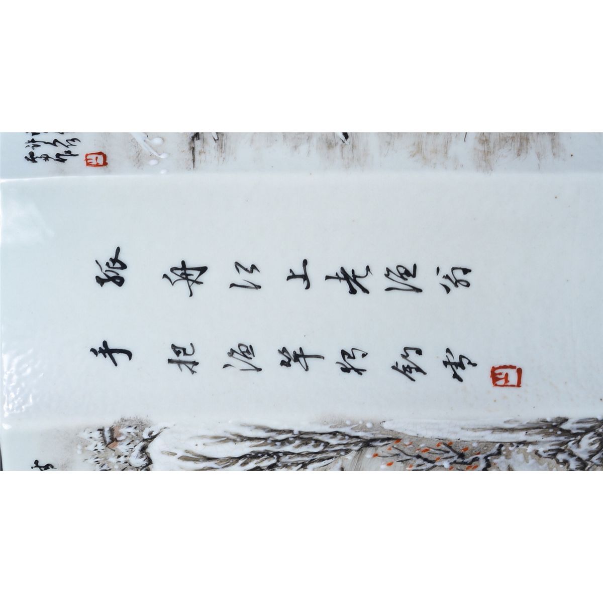 Chinese Republic Period Bi Tong brush pot: eight-paneled body featuring winter landscape scene; four-character Mark on base; H: 16 cm, L: 14 cm