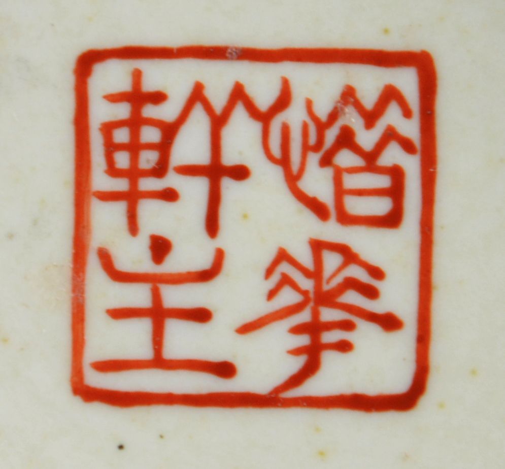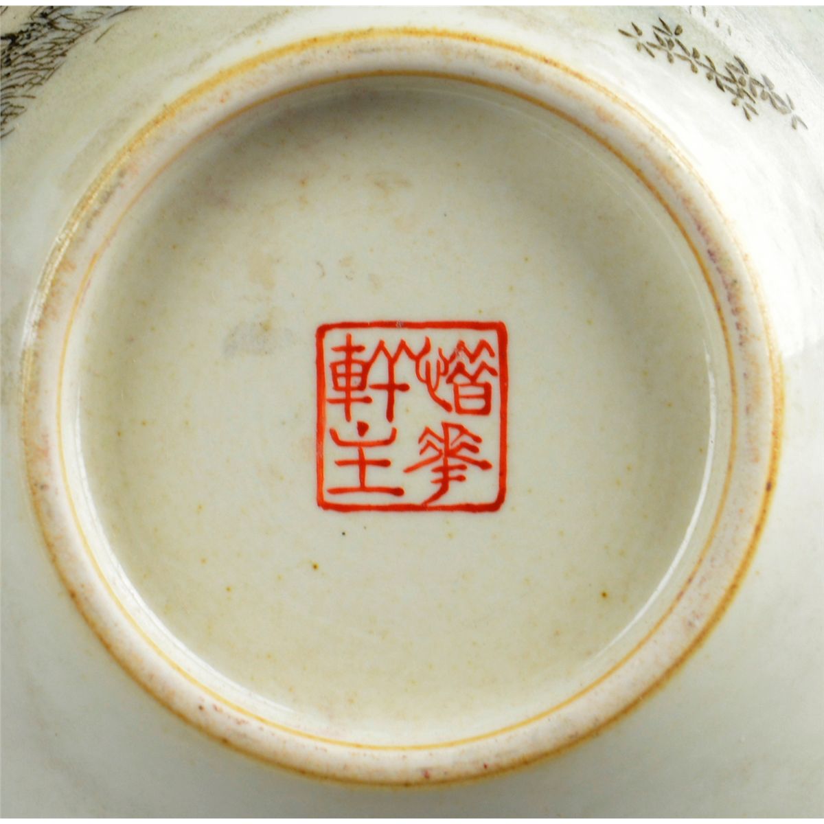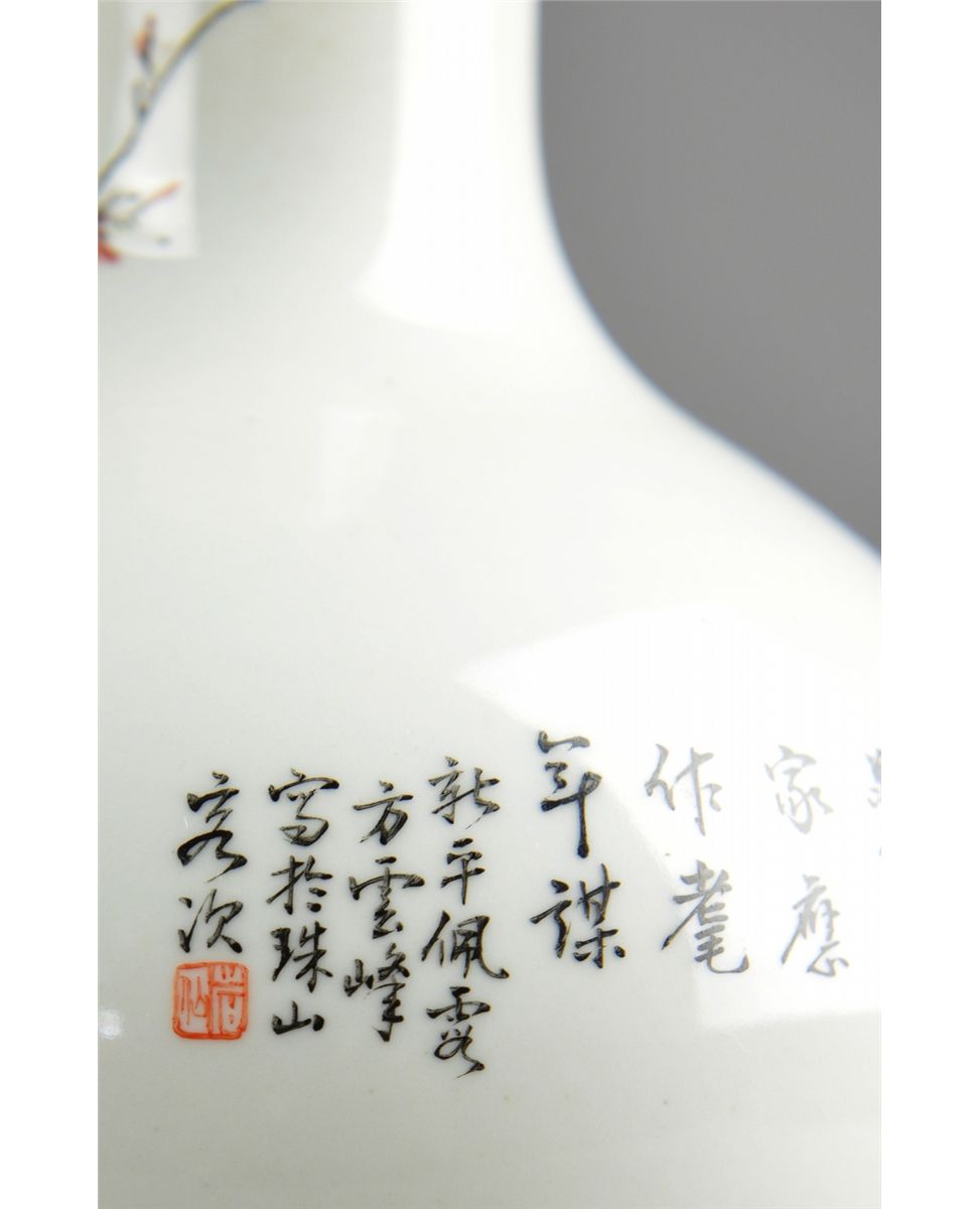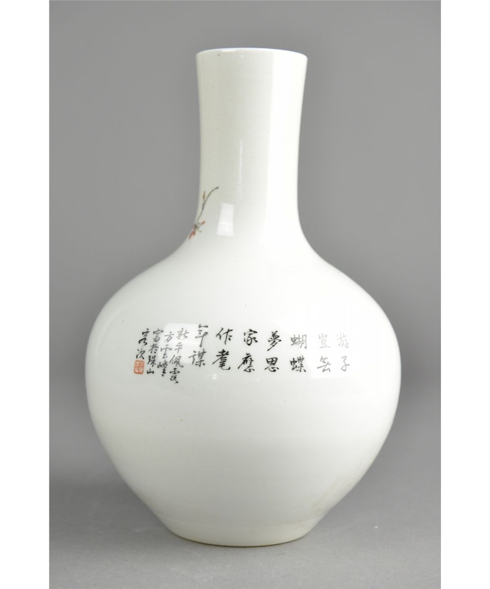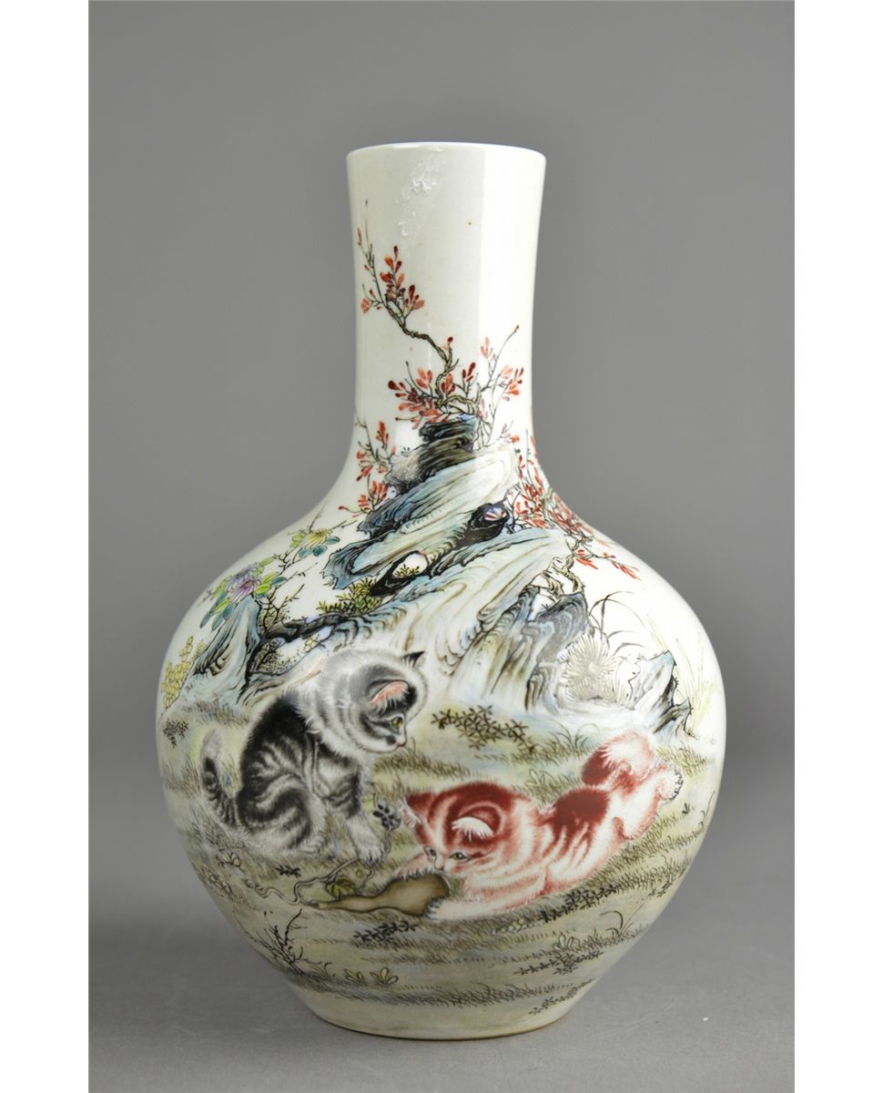 Chinese Republic Period porcelain vase; ovoid body featuring landscape scene of pair of cats; inscribed with poem and signed with artist seal; four-character Mark on base; H: 21.5 cm, D: 14 cm