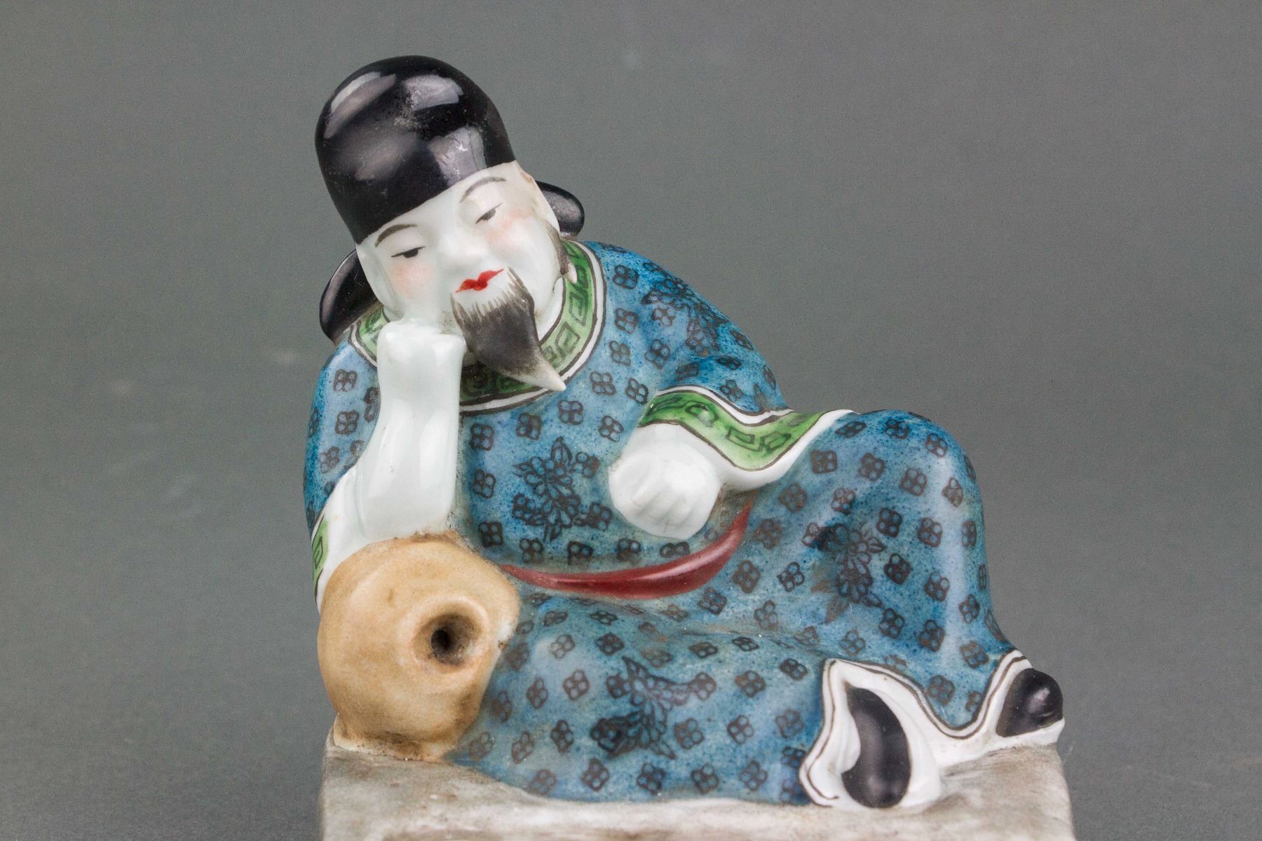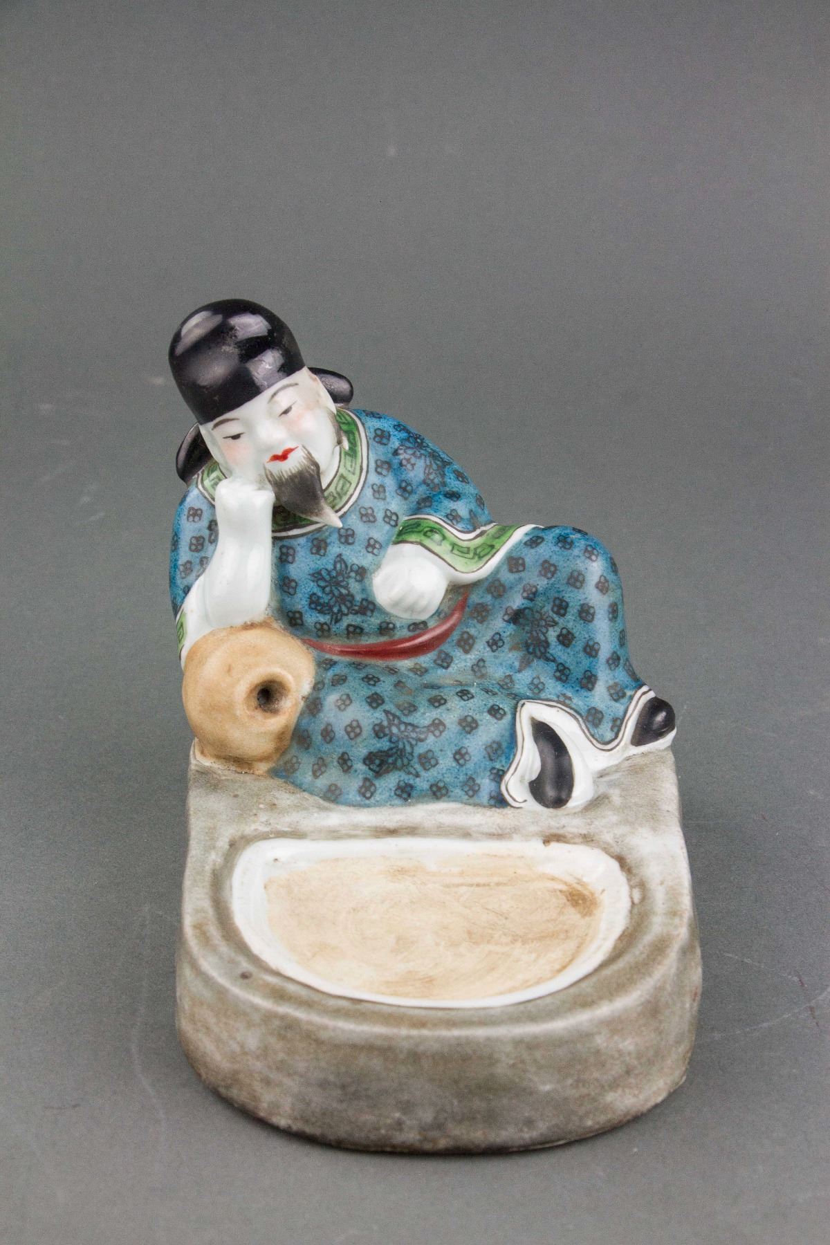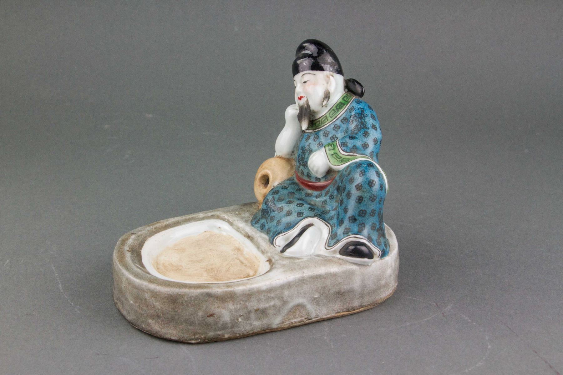 Chinese Republic famille rose porcelain ink pot; of a ovoid form; with a scholar figure on top; artist Zeng Longshen (1901-1964) mark on base; 12 cm x 16 cm, 709 grams