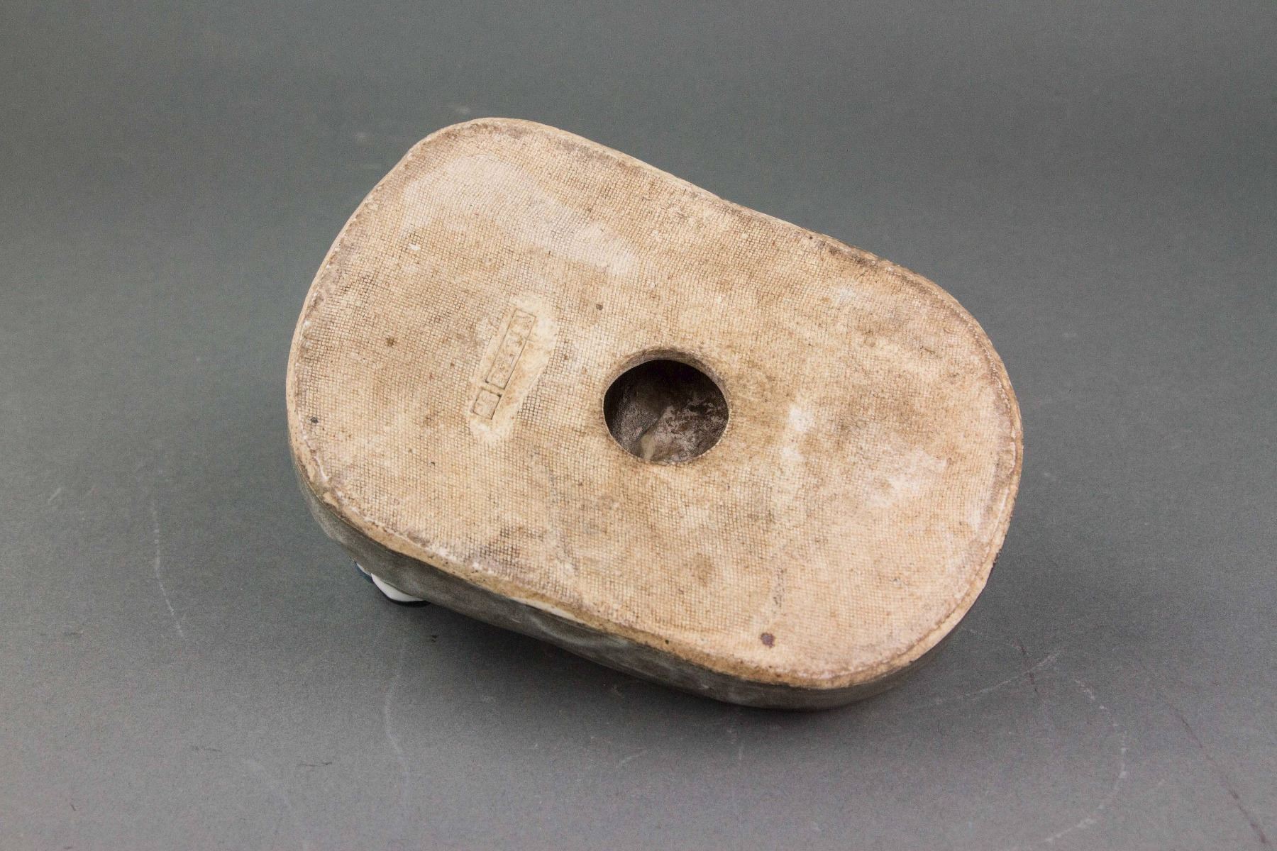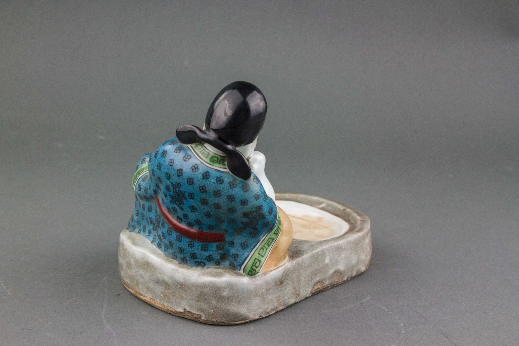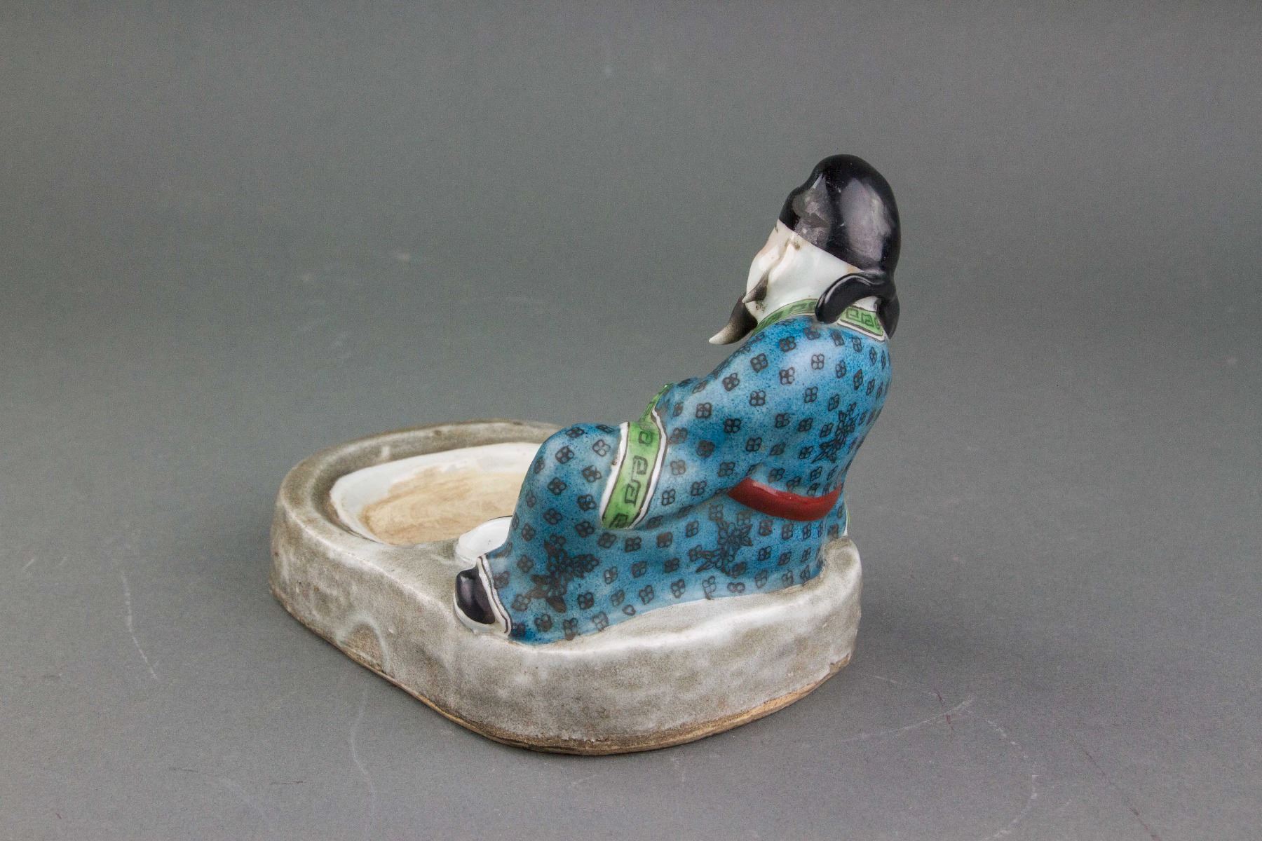 Chinese Republic famille rose porcelain ink pot; of a ovoid form; with a scholar figure on top; artist Zeng Longshen (1901-1964) mark on base; 12 cm x 16 cm, 709 grams