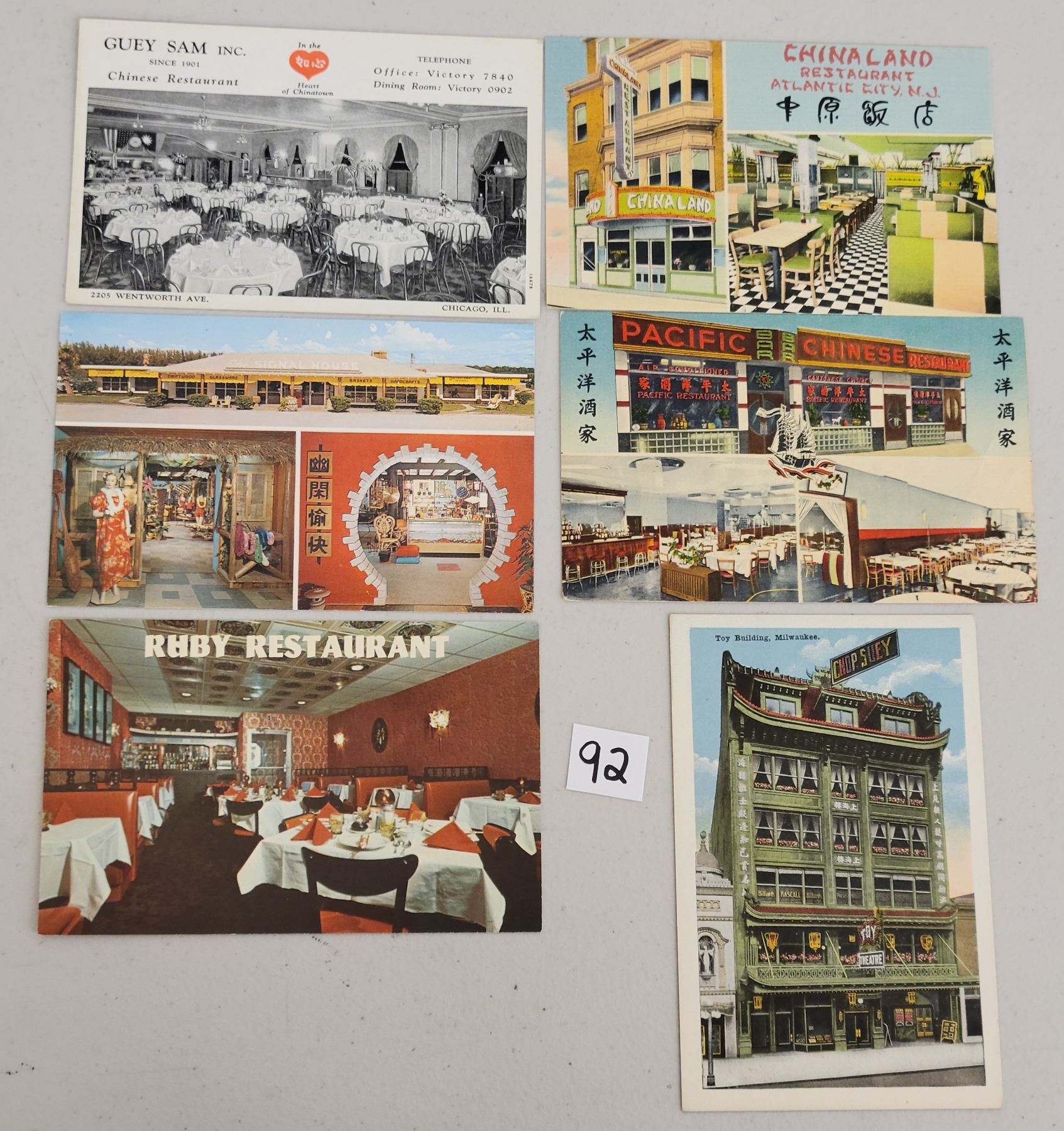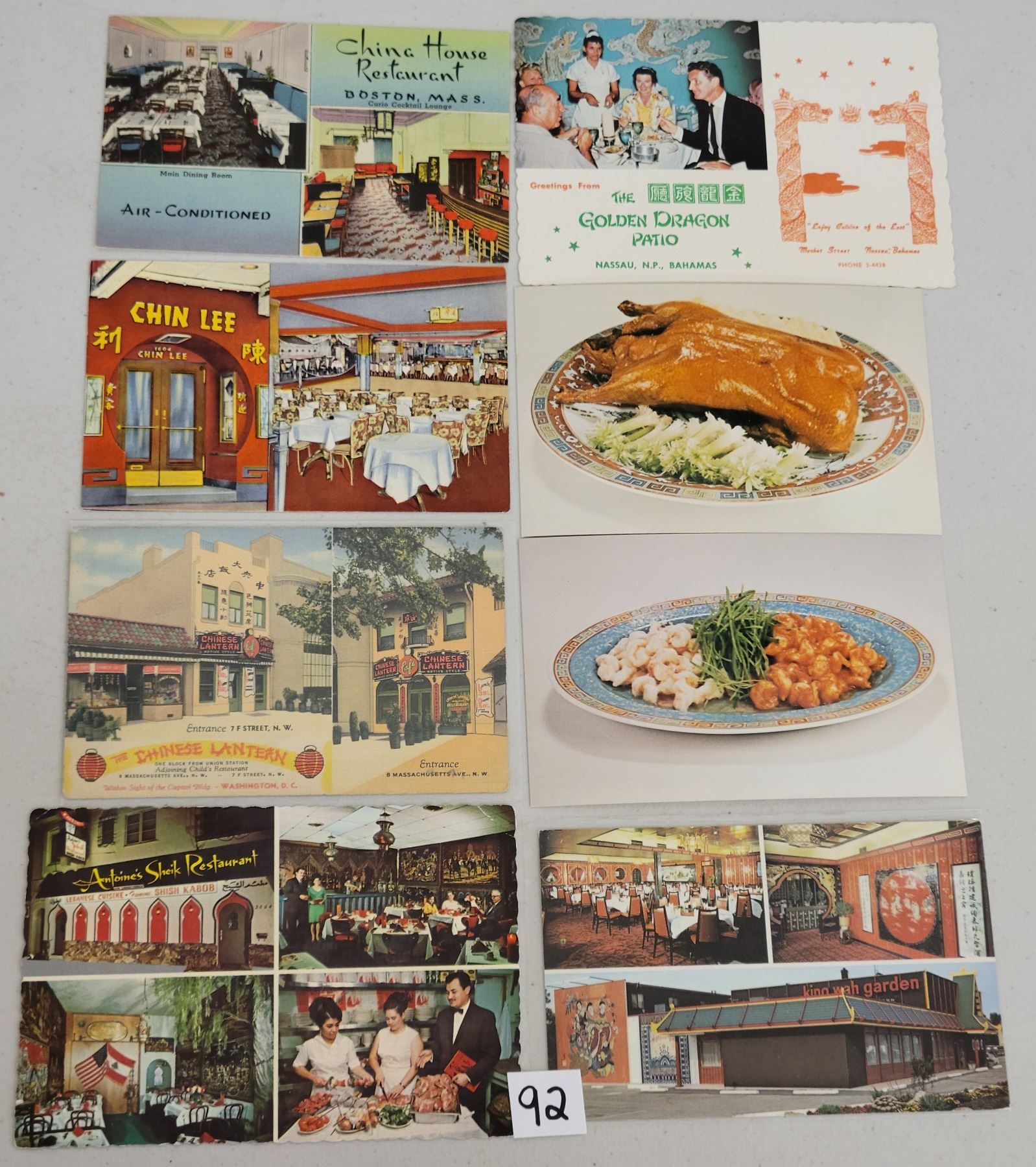 30 Chinese restaurant postcards. Early to continental chrome postcards.