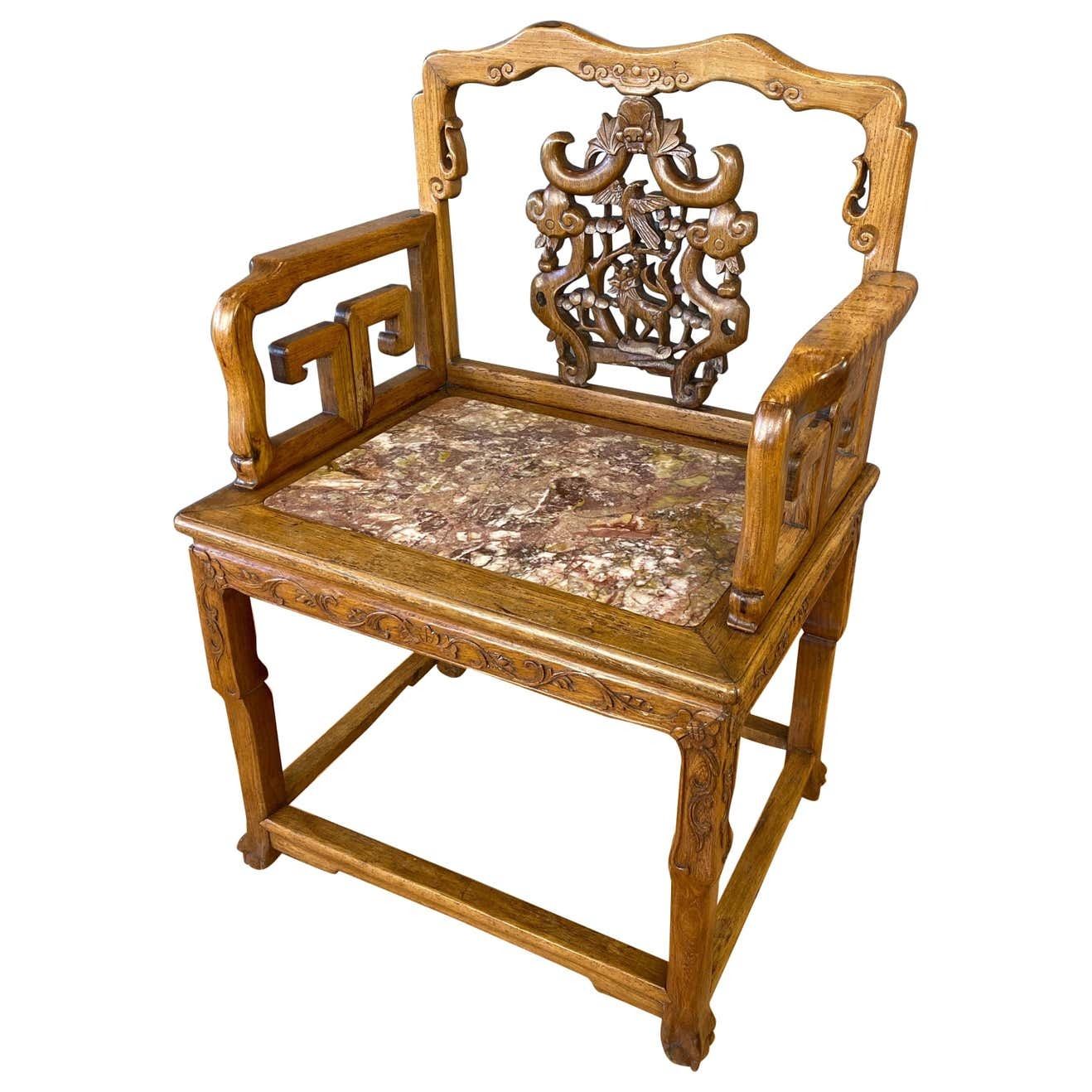Chinese Qing Dynasty Rosewood and Marble Armchair It was created by skilled craftsmen in traditional style with fine handcrafts. the handwork is very fine with incredible detailling. This is a great piece of valuable collection, a valuable personal alter or a very good present. Don't miss out this chance to get it .Good luck to you!