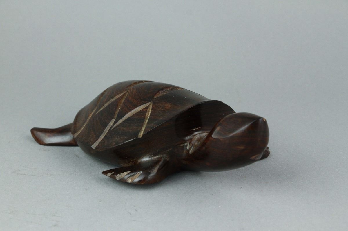 Chinese rosewood carved figure; featuring turtle in recumbent pose; crackled and repaired; L: 21 cm, W: 12 cm, 642 grams