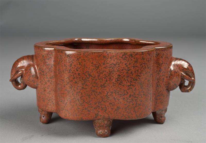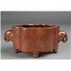 With two elephant head handles and four feet, in a cartouche shape, 8.25"W X 3.75"H.