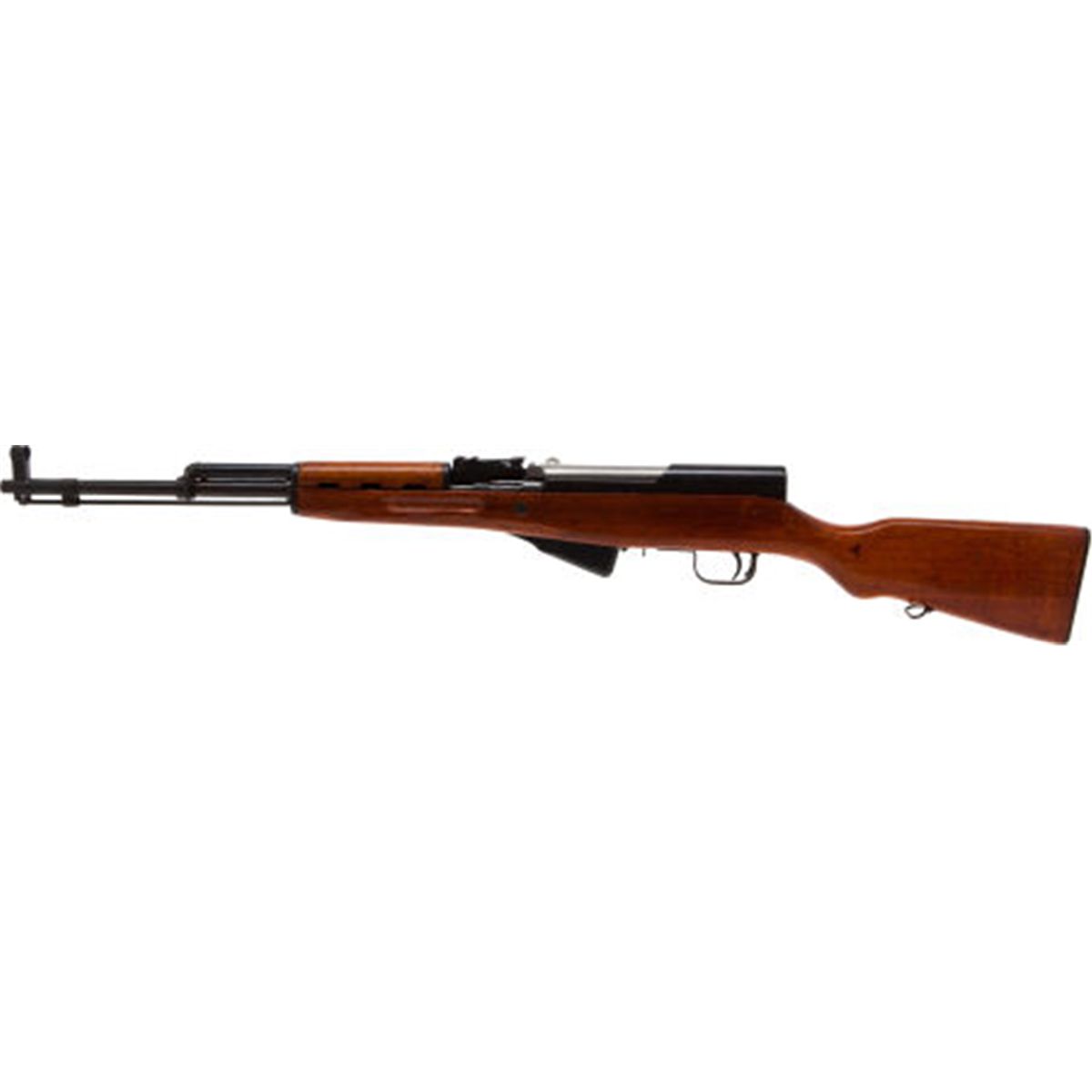 Chinese SKS Type 56 Rifle. Serial No. 120047339, 7.62 x 39 mm, 20.5-inch barrel with standard sights. Includes 10-round magazine, green web sling, extra green magazine belt, cleaning rod head, drift, brush, muzzle cap, and small case for accessories. Imported by Norinco. Condition: Good. Finish retains 85-90%. Stock and grip shows minor wear.NRA FIREARMS FOR FREEDOM PROGRAM