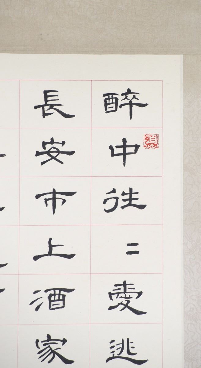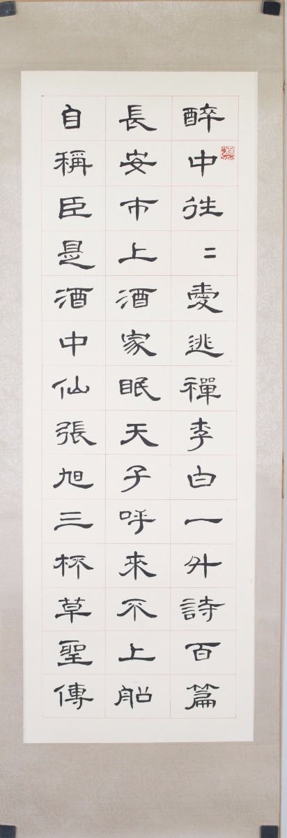 Chinese script calligraphy, ink on paper; inscribed with one artist seal; 97 cm x 35 cm