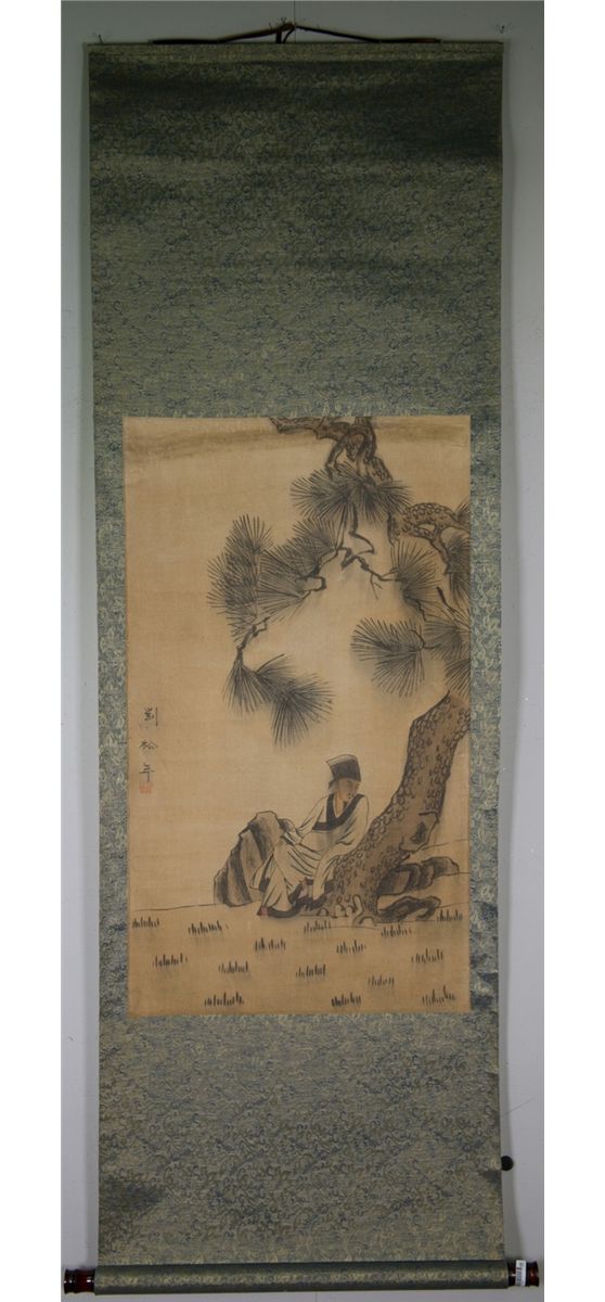 Scholar on Tree, Chinese ink and watercolour on silk; hanging scroll; signed Liu Song Nian (1155-1218) and inscribed with one artist seals; 85 cm x 48 cm
