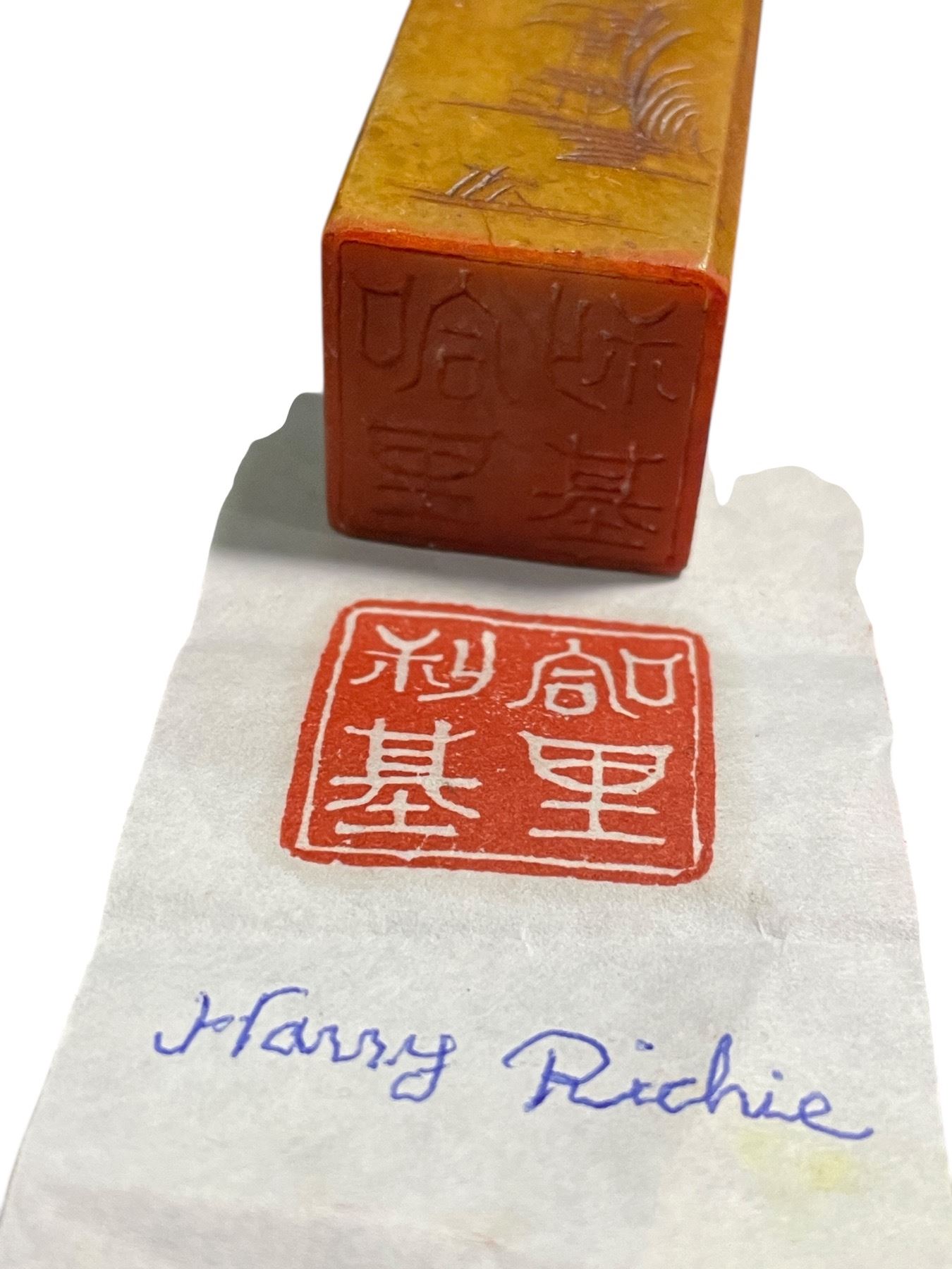 Chinese Seal and Ink Set - Carved Chinese Zodiac Rat and Landscape Motifs
