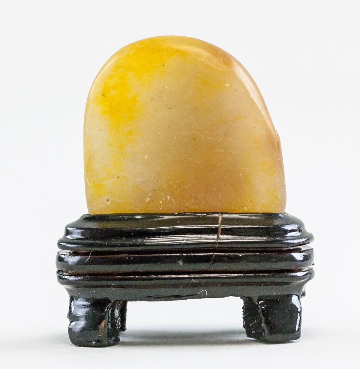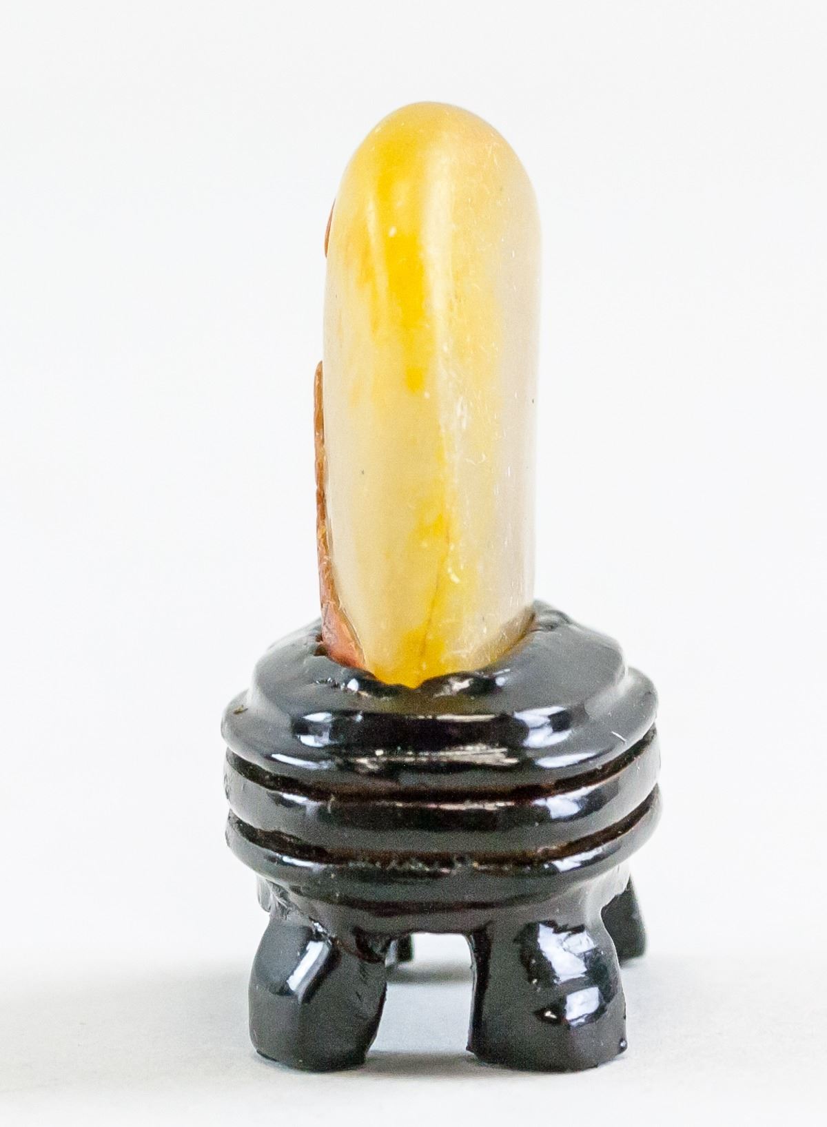 Chinese shoushan stone with stand. Of yellow and brown tone. 4 x 3.5 cm, 32 grams.