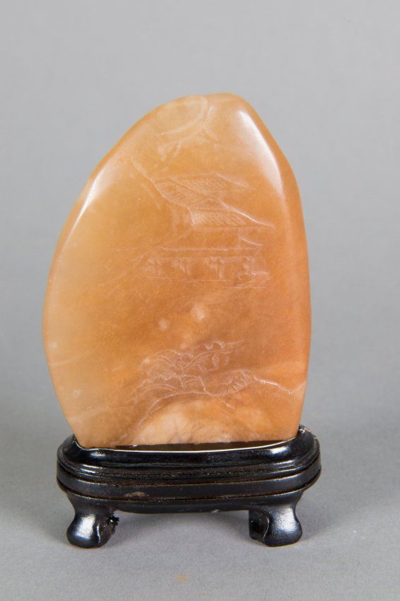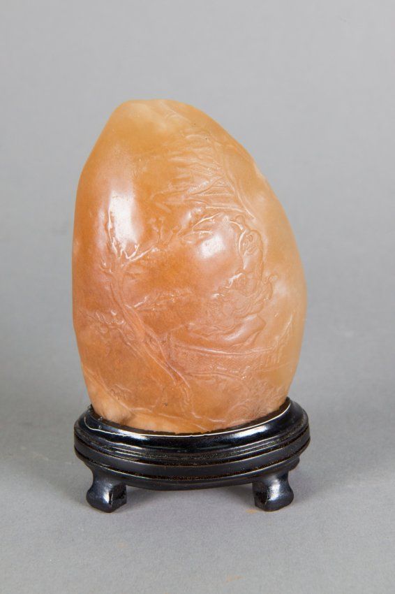 Chinese shoushan stone pebble boulder; H: 10.5 cm, W: 7 cm, 326 grams, accompanied with wood stand