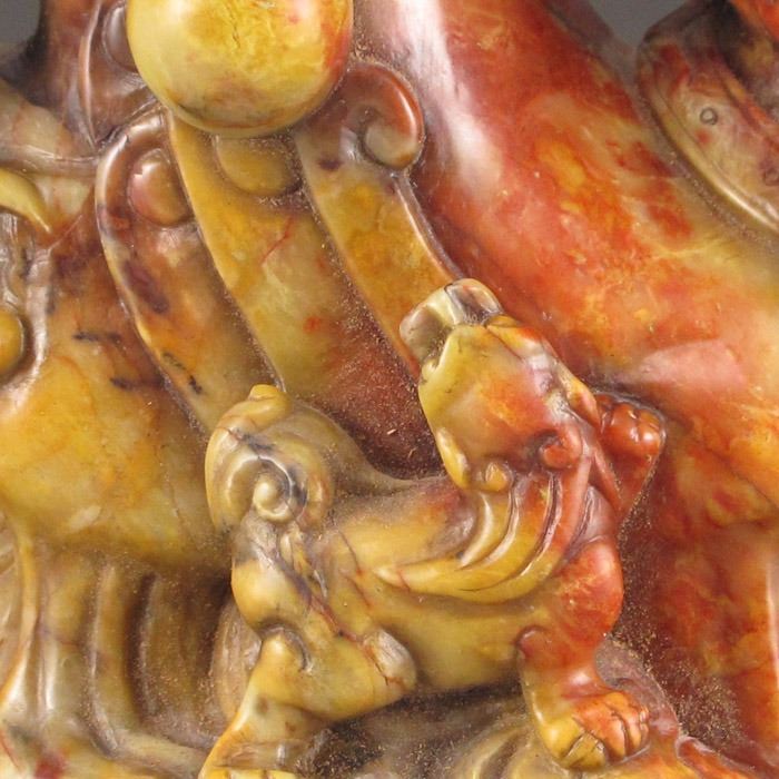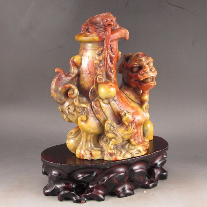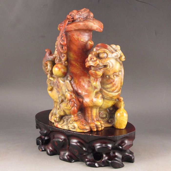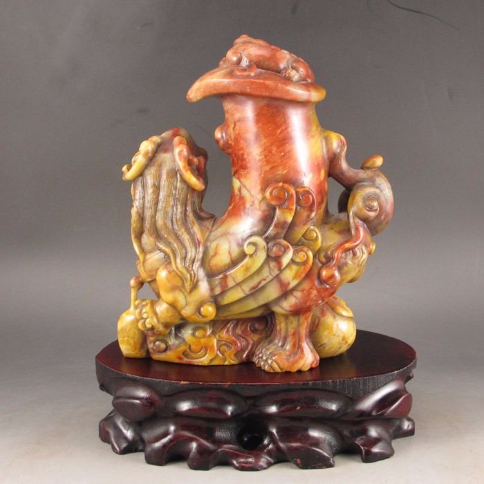 Chinese Shoushan Stone Statue - Fortune Beast Dimension: 172x150x80 (mm)6.77x5.91x3.15(inches) Weight 4.21 lbs/1908 g The total weight does not include the base. The base is not included after you have won the auction.But you can pay extra dollars to have one.