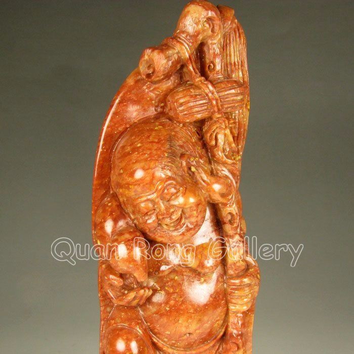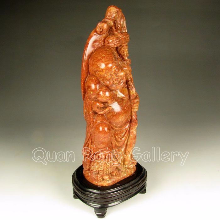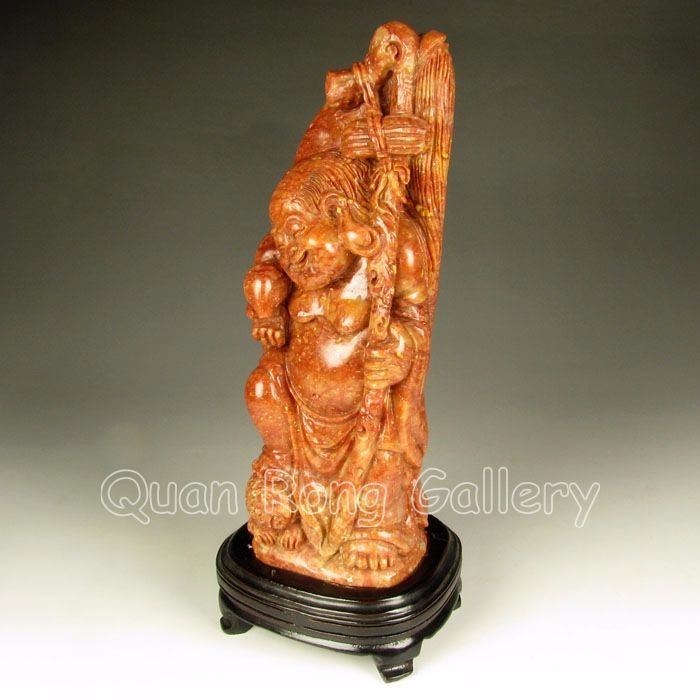 Chinese Shoushan Stone Statue - Taoism Fortune Deity Liuhai & 3 Legs Toad Dimension: 185x60x50(mm) 7.28x2.36x1.97(inches) Weight 1.80 lbs/815 g The total weight does not include the base. The base is included after you have won the auction.